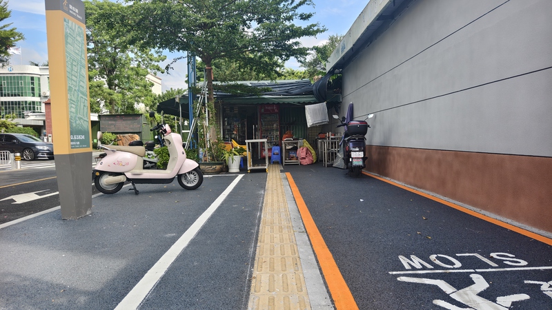 第四,最令居民匪夷所思的是盲道设计:在田洋六路最北侧尽头,盲道竟直接延伸至一家小卖部内部,让居民哭笑不得。“您要按这个走,非得撞进别人的店里不可,这设计太不靠谱了。”