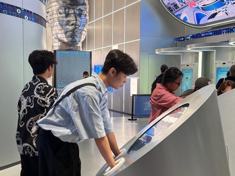 “跟着电影做科普”活动带领港澳高校师生代表探索电影工业奥秘、切身感受科技力量。在定军山电影研学基地,当灯光暗下,震撼音效瞬间包裹全场,大家仿佛穿越到电影场景,沉浸式体验到电影前沿技术带来的视听盛宴;在宝安低空经济展厅,师生们直观了解了城市产业创新成果,还在模拟场景中体验了无人机操作,领略低空科技与未来生活融合的无限可能;走进深圳科技馆(光明),师生们通过VR设备“漫步”深圳、与机器人展开乒乓球对决、体验智能家居场景,感知科技赋能生活的生动图景,更增强对未来发展的期待与信心。