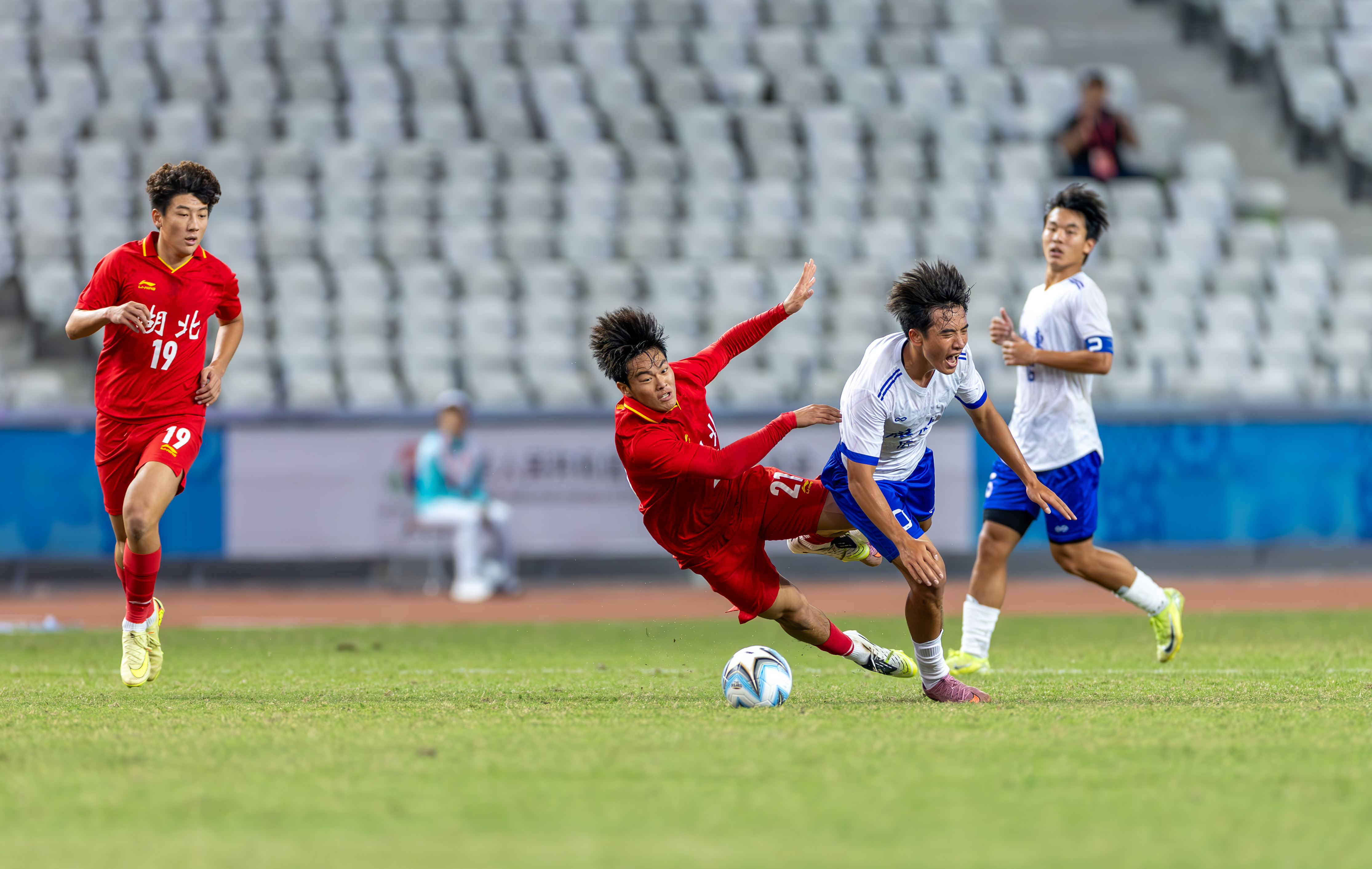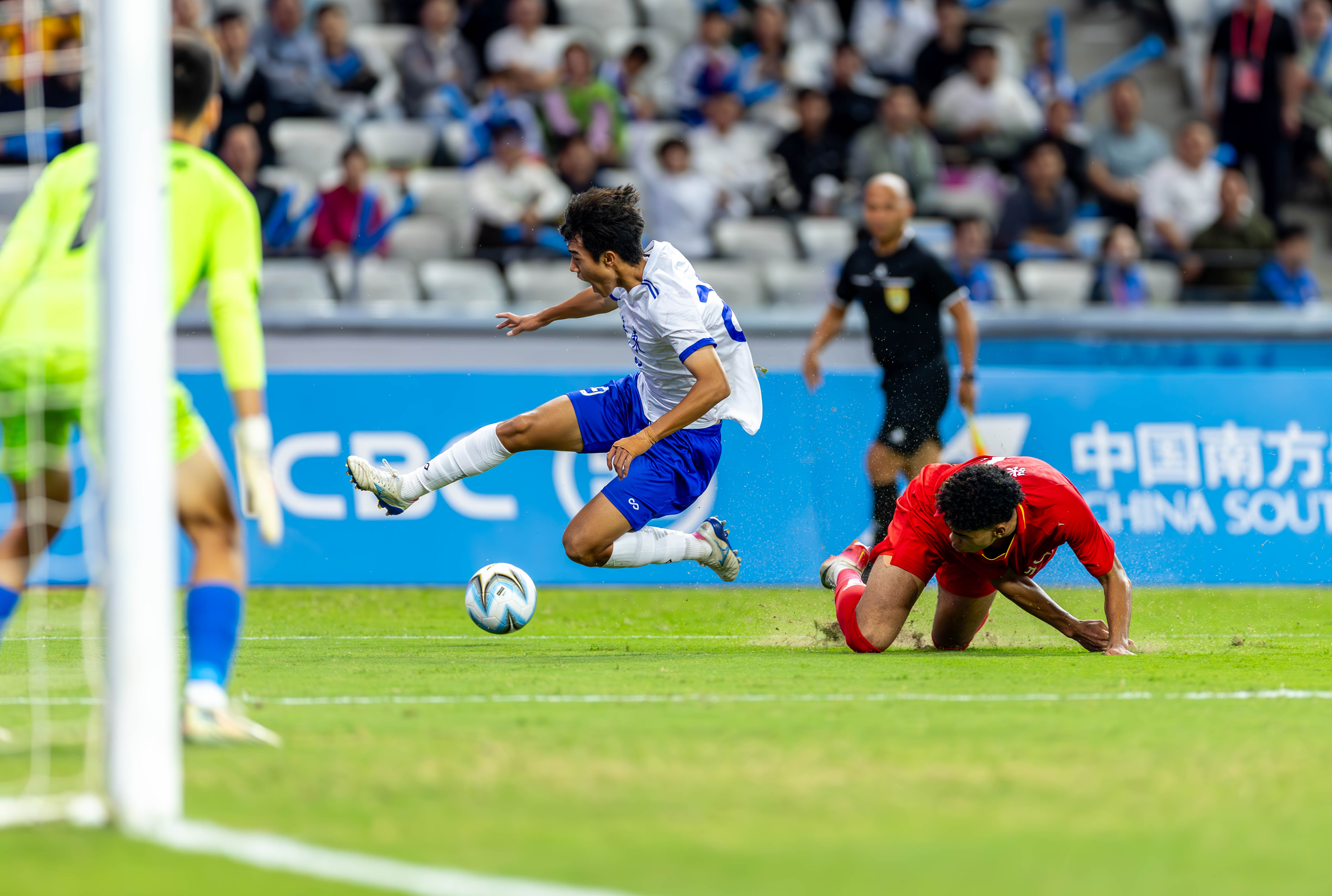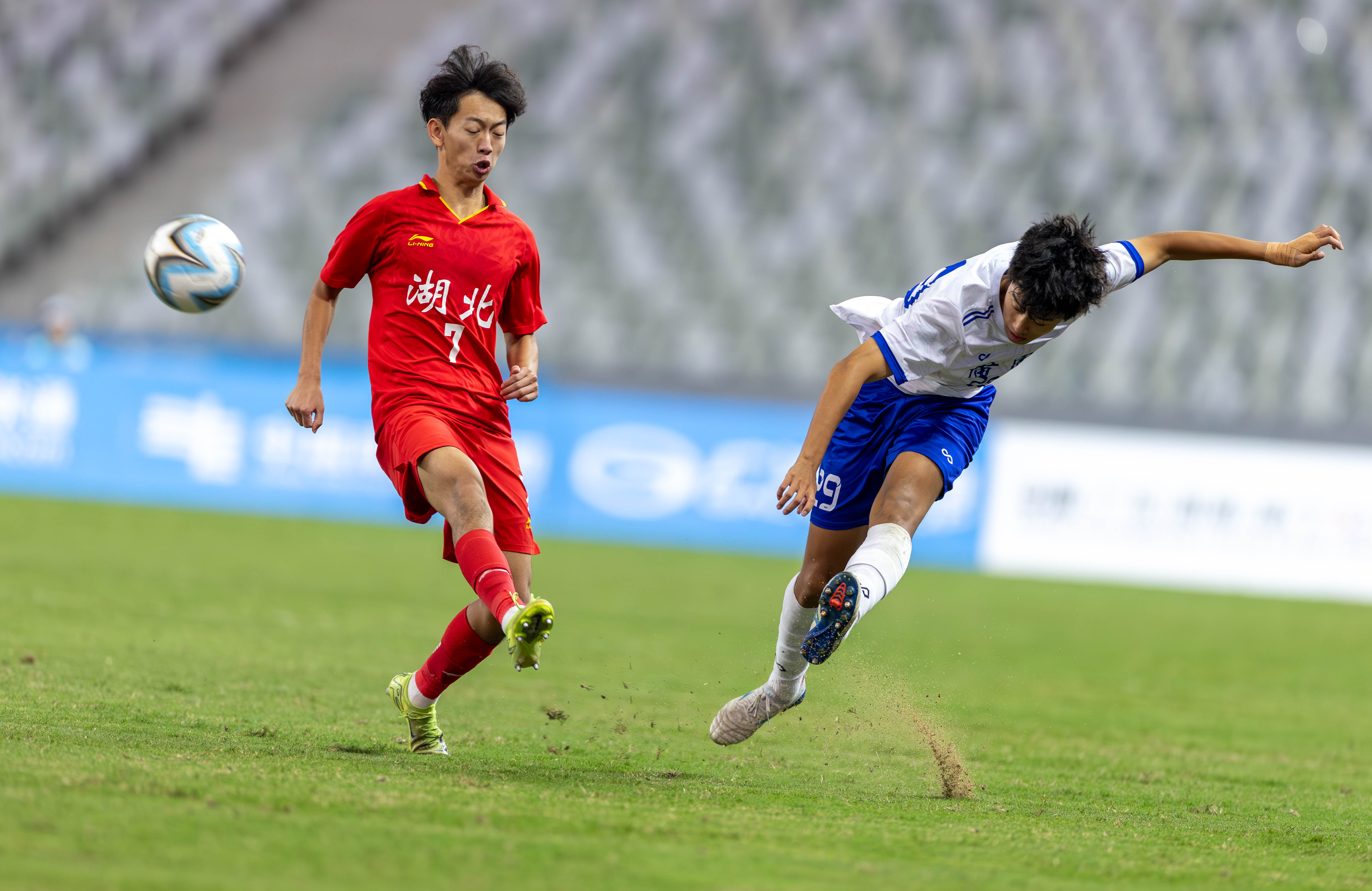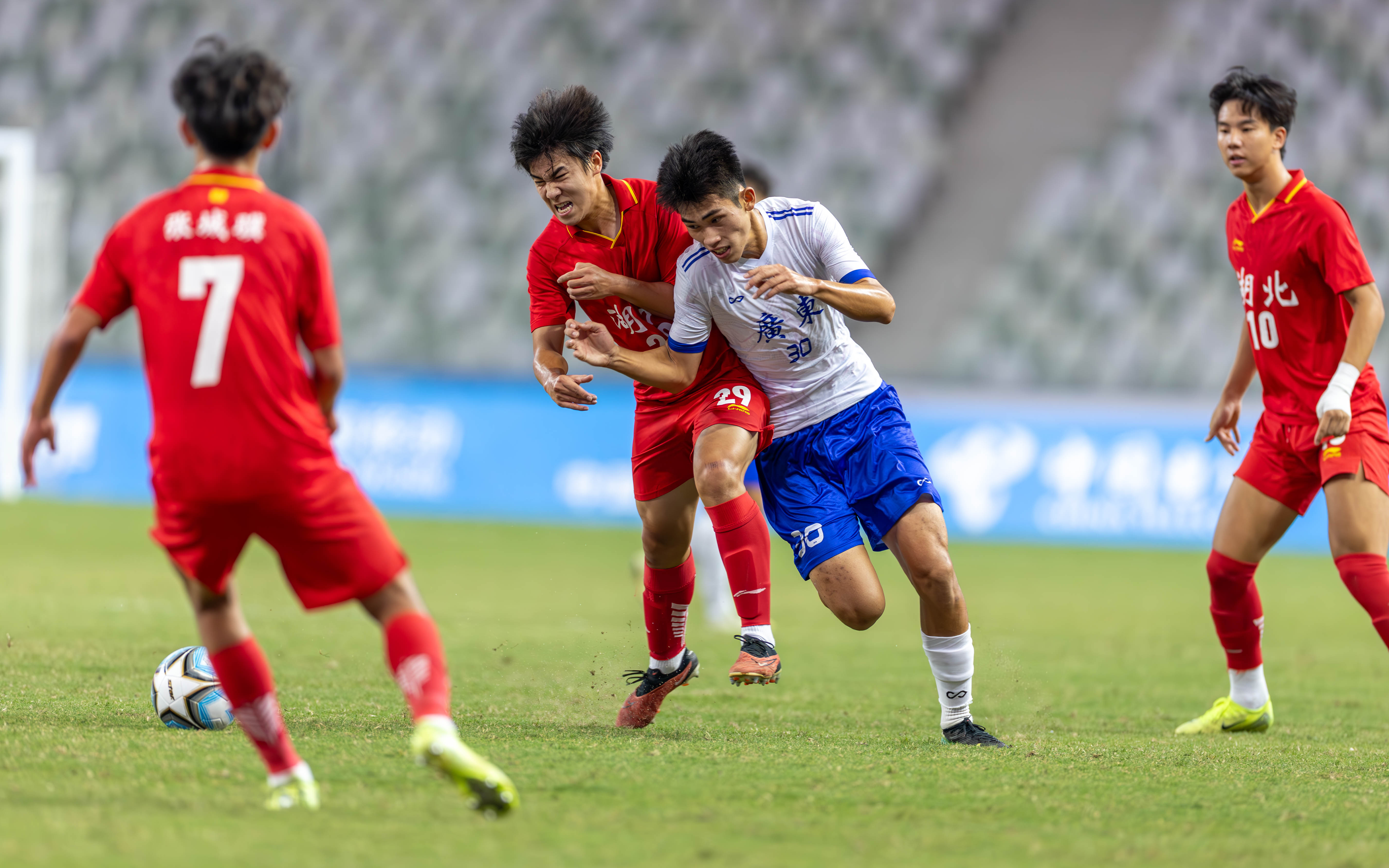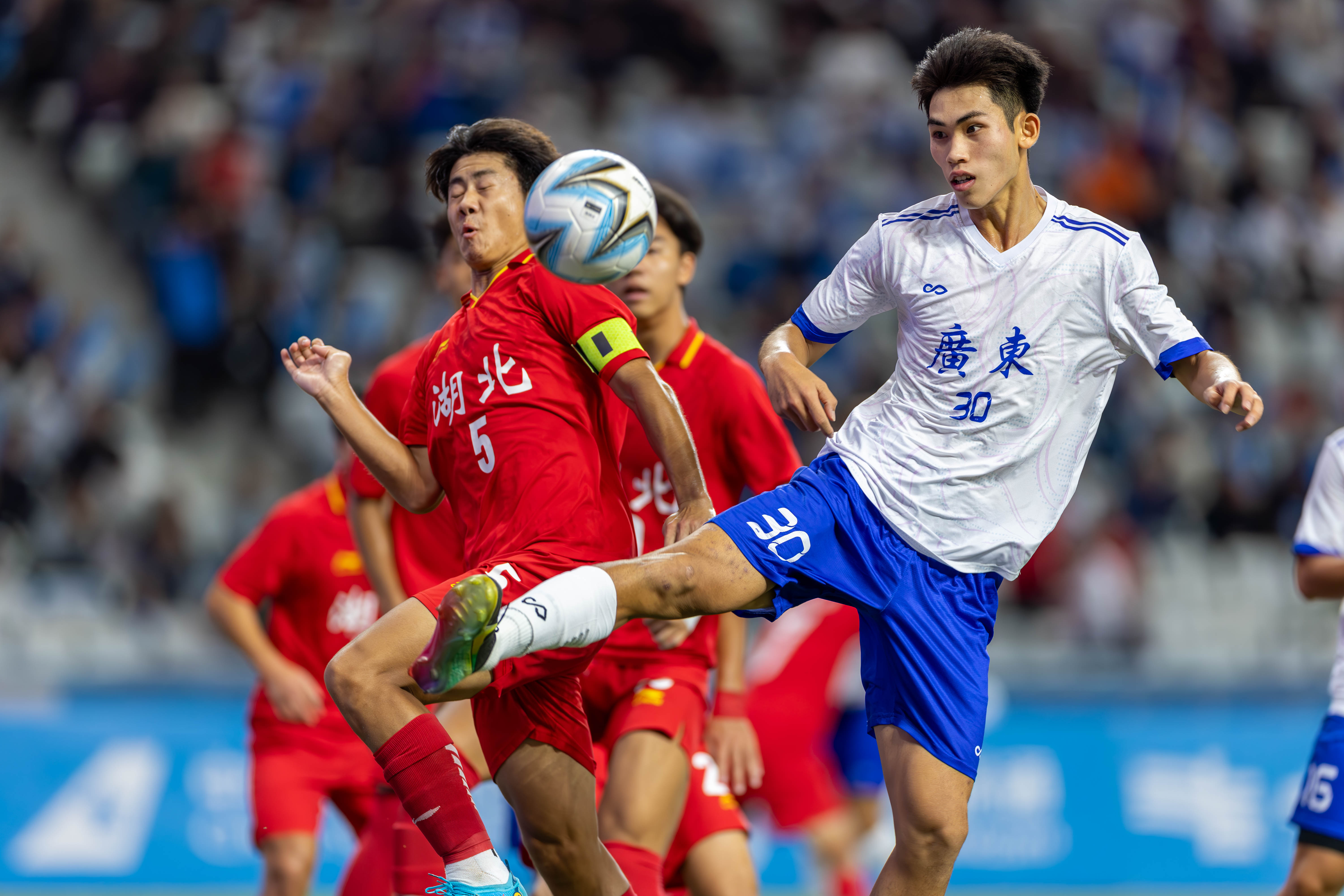 10月21日,十五运U18男足广东队对阵湖北队的比赛在深圳宝安竹林体育场举办。90分钟的比赛中,湖北队10号凭借倒挂金钩进球,在上半场扳平比分;广东队10号球员则凭借轻巧推射破门,在下半场83分绝杀湖北队。这场比赛最终广东2-1绝杀湖北,携手江苏、辽宁、山东进四强。