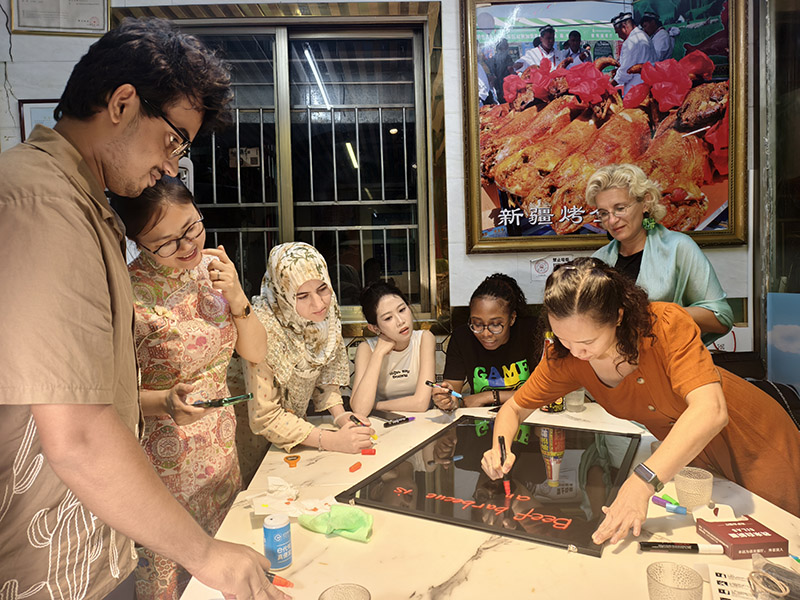 國際友人們親手制作多語廣告立牌,協助餐廳實現多語推廣,這些立牌當場被店家采納並展示出來。