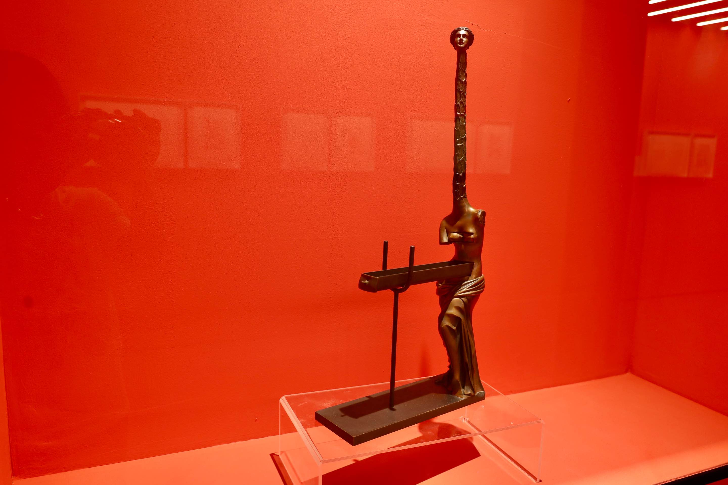 达利板块的青铜雕塑《长颈鹿维纳斯》堪称超现实符号典范:以古希腊维纳斯为原型,修长鹿颈与女性躯体融合,胸前抽屉元素呼应弗洛伊德理论,内部微型钟表、羽毛等细节强化“记忆与欲望”主题。