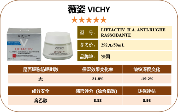 抗皱效果方面,娇韵诗、怡式、菲洛嘉表现突出,28 天后鱼尾纹深度变化率分别为 - 25.2%、-24.5%、-20.5%,均低于 - 20%,抗皱作用明显;保湿效果上,菲洛嘉以 31% 的皮肤含水量增长率位居第一,怡式(23.9%)、娇韵诗(21.9%)、薇姿(21.8%)紧随其后,含水量增长率均超 20%,补水能力优异。
