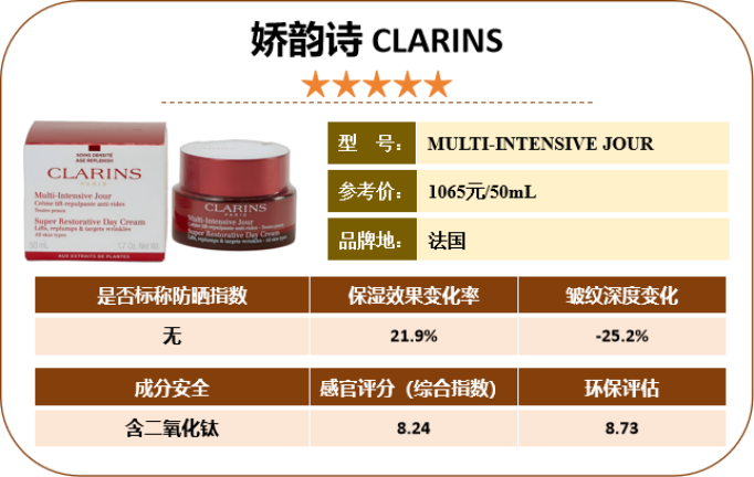 测评围绕消费者最关注的功效评估(65% 权重)、感官评价(15% 权重)、成分安全(10% 权重)、环保评估(10% 权重) 展开,结果显示,14 款产品均优于基础霜,平均皱纹深度减少 17.39%,皮肤角质层含水量增加 17.17%,其中 4 款产品综合表现优异,获评 “五星”。