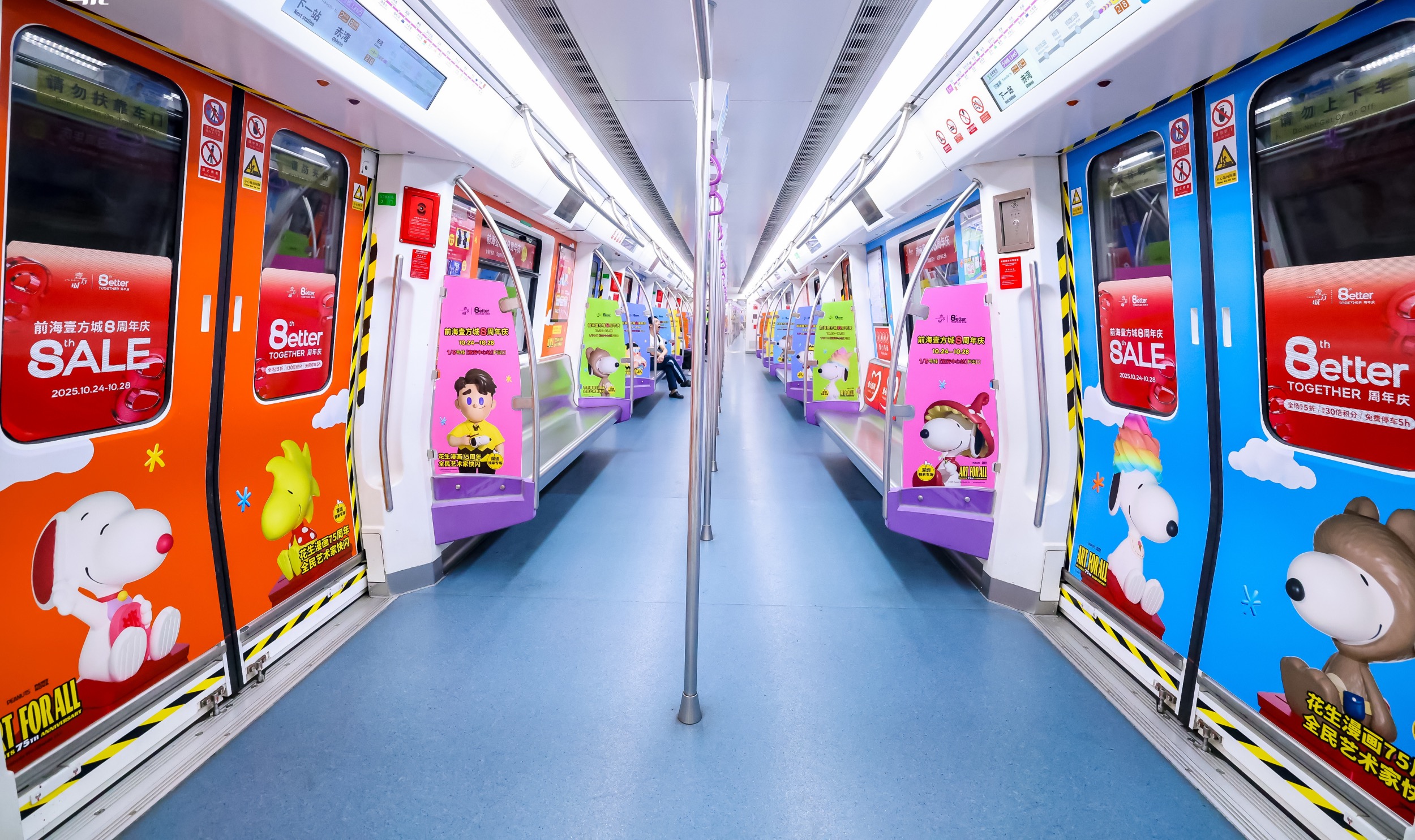 10月17日至11月16日,L1地铁广场即将变身漫画世界。花生漫画(Snoopy)75周年“Art for all”全民艺术家联名快闪深圳独家亮相!可爱史努比气膜、定制互动装置、限定周边快闪店一次逛够,沉浸式打卡超级可爱的史努比。早在10月14日,地铁5号线的“史努比独家包列”就上线了,通勤路上抬头就能撞见软萌的史努比,日常出行都变得超有惊喜感。