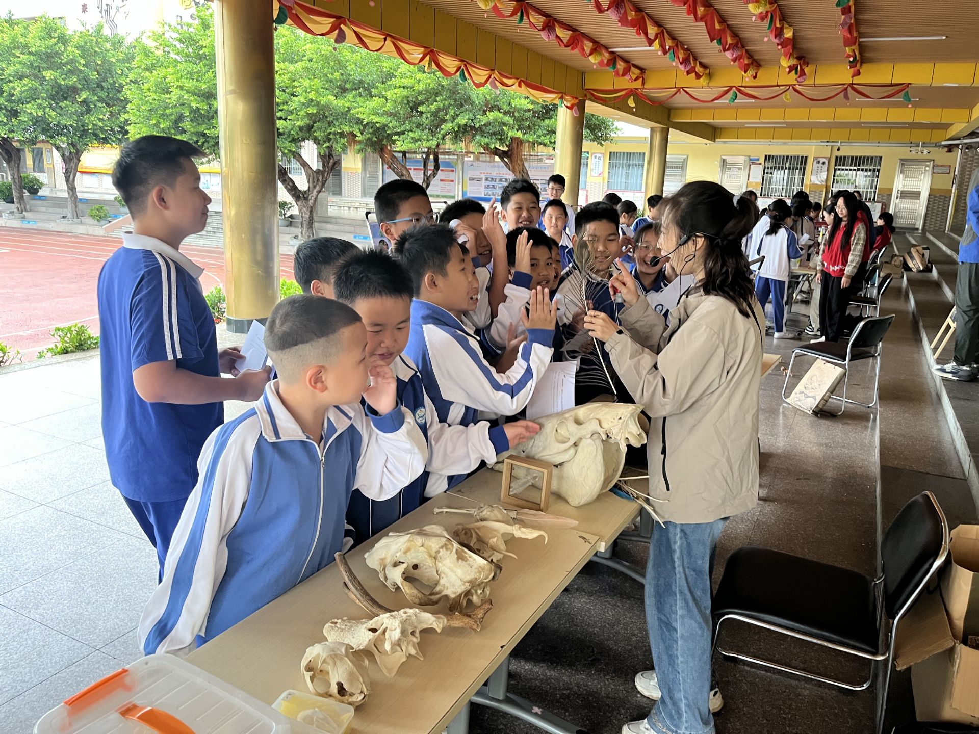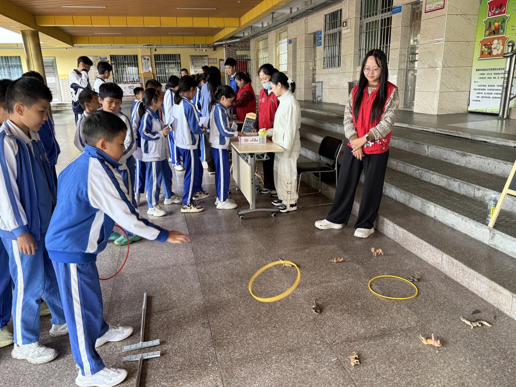 在科普互动区,动物展示饲养箱前围满了好奇的孩子们。动物饲养人员一边细致地照料豹纹守宫与黄喉拟水龟,动物饲养员向大家展示“豹纹守宫蜥蜴”和“黄喉拟水龟”,向大家讲解它们的生活习性、食性特点、天敌类型以及在湿地生态系统中的重要作用。在讲解与互动过程中,学生们都积极互动,踊跃举手抢答。“豹纹守宫的尾巴有什么作用?”“湿地能为黄喉拟水龟提供哪些生存条件?”…,答对问题的孩子们都获得了专属动物印章,成就感满满。趣味闯关区更是人气爆棚,学生们有序参与,在欢声笑语中加深了对湿地知识及野生动物生存威胁的了解。