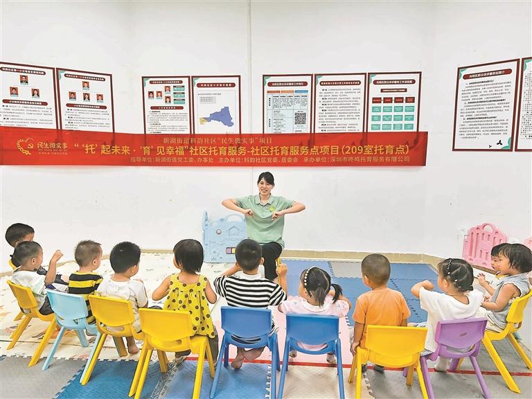自今年6月起,街道9个社区托育服务点(圳美1个,荔湖1个,新羌2个,楼村2个,科韵3个)分批次投入运营,其中圳美、新羌、楼村社区的托育服务于6月7日率先开启,荔湖、科韵社区则于7月15日跟进启动,实现了街道重点区域托育服务的有效覆盖。