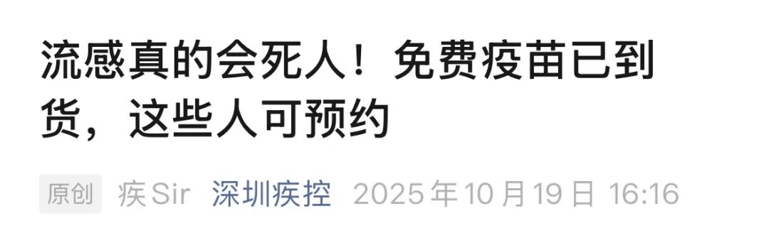 目前深圳的免费流感疫苗