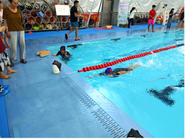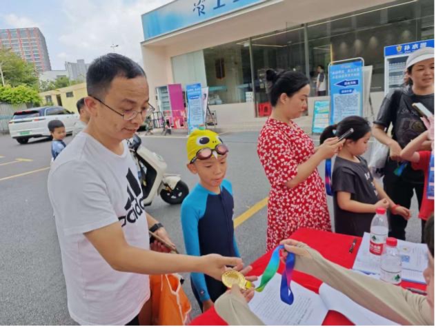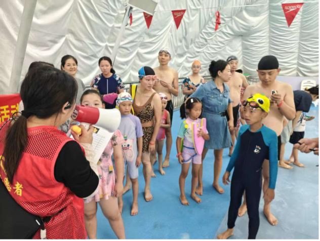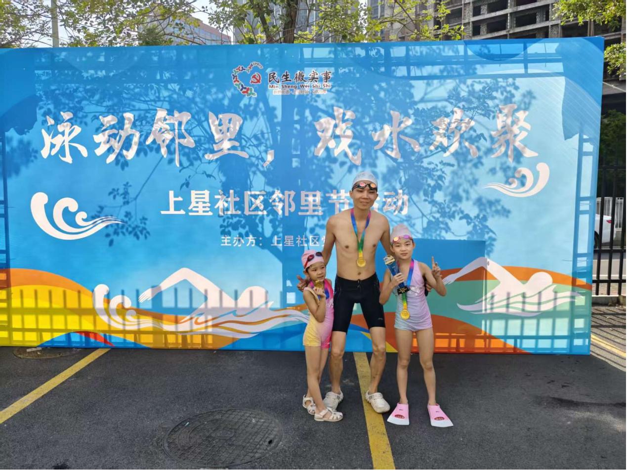 活动现场热闹非凡,上星社区游泳馆俨然成为充满活力的“邻里社交场”。在成人组的蛙泳、自由泳竞速赛中,参赛居民劈波斩浪,泳池内水花飞溅,岸边加油声此起彼伏;趣味亲子寻宝环节更是将氛围推向高潮,家长与孩子手牵手在水中寻找“宝藏”,欢声笑语回荡在场馆内。居民们表示,平常忙于工作生活,与邻居交流甚少,这次活动让大家有了轻松交流的机会,不仅学会了新的游泳技巧,还认识了志同道合的朋友。