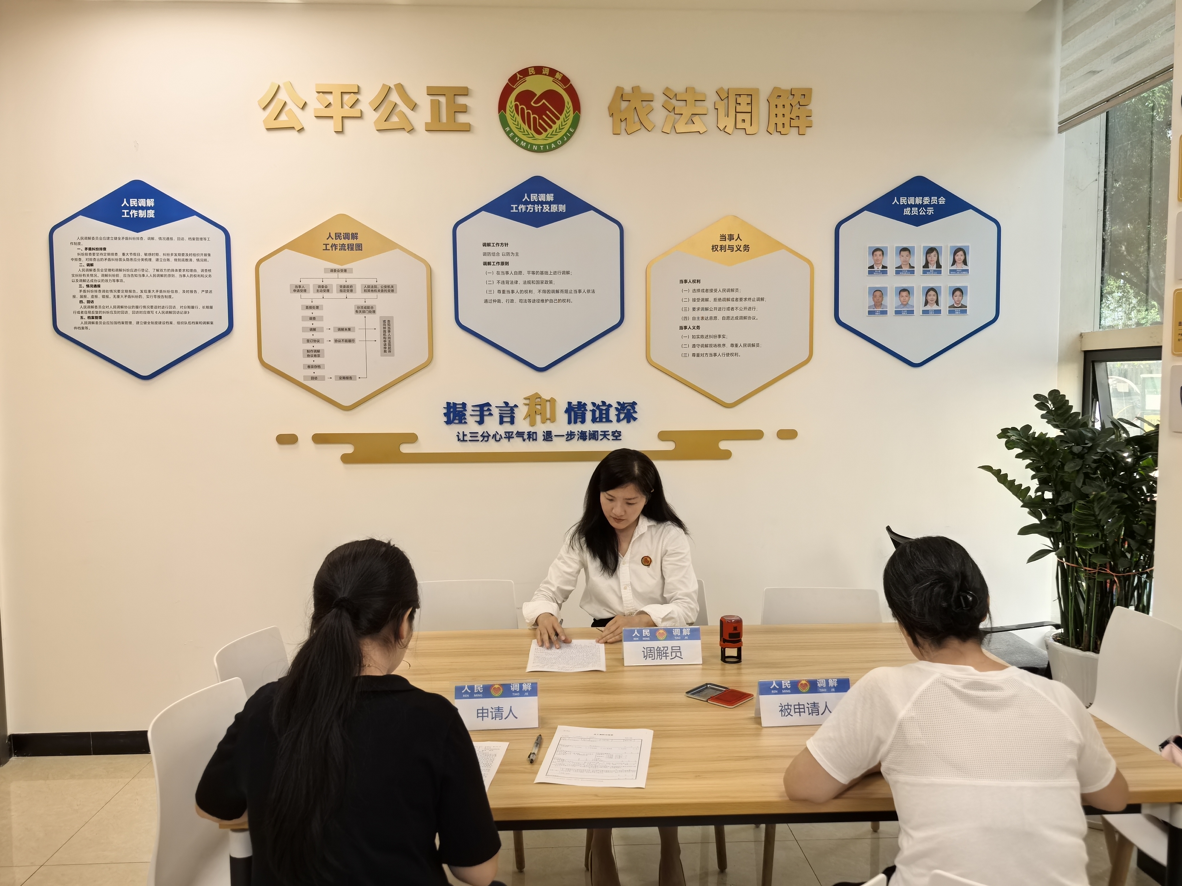 “今天签完调解书,一会法院同志马上在线进行司法确认,当场出裁定书,和判决书具有同等法律效力。”调解室内,调解员李丽芳正耐心地与居民沟通。这位“法律明白人”,在基层工作中坚持发扬和践行新时代“枫桥经验”。去年,李丽芳还作为广东省唯一社区代表在全国法律明白人培训班做经验交流,被司法部表彰。
