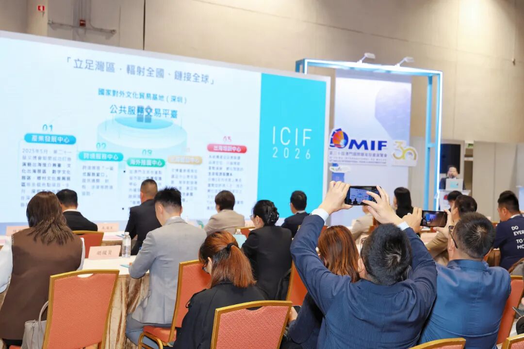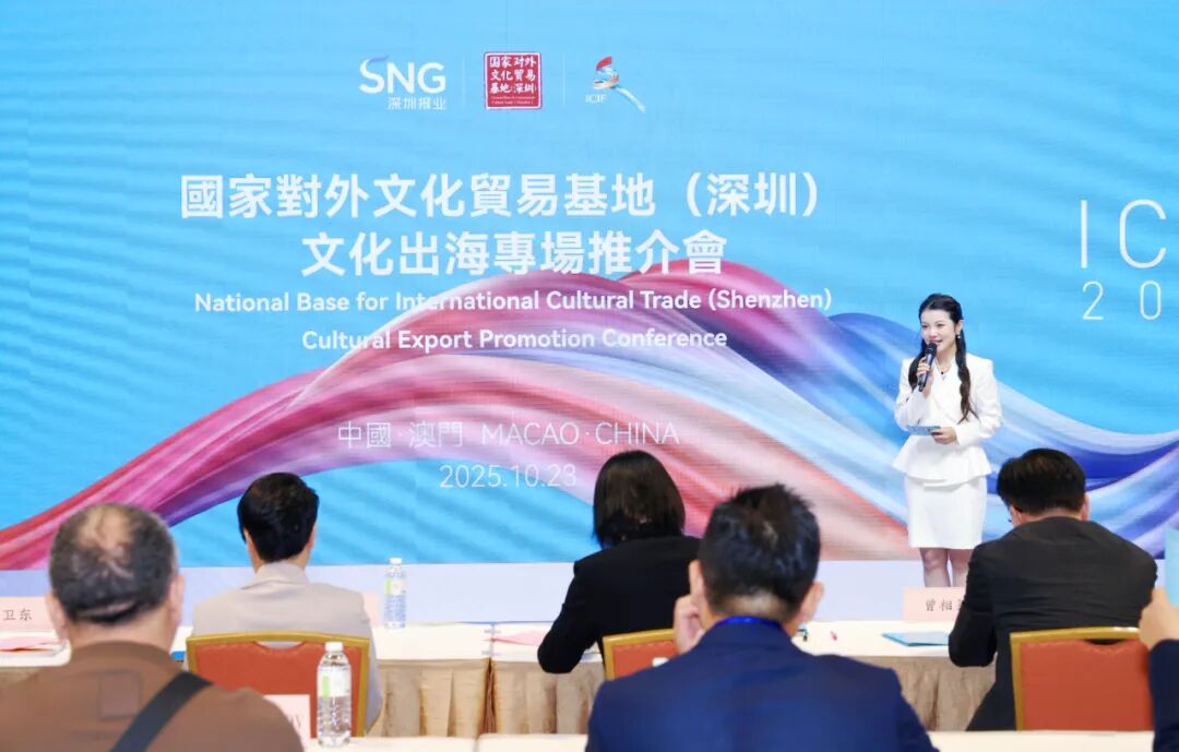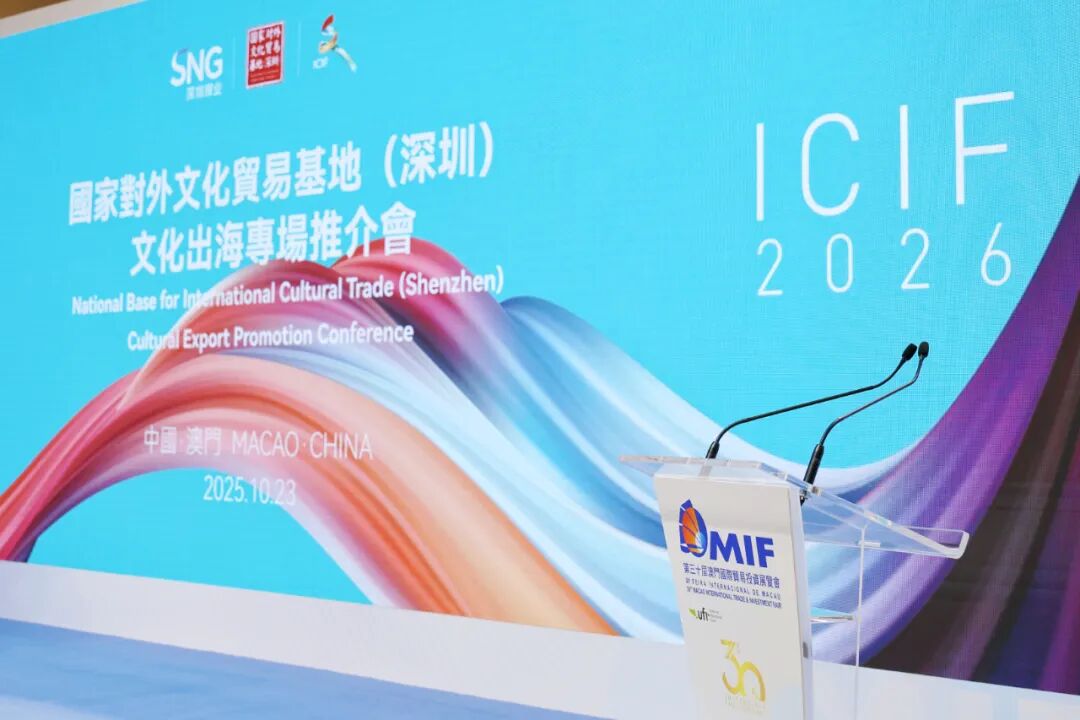 10月23日,国家对外文化贸易基地(深圳)文化出海专场推介会在澳门国际贸易投资展览会(MIF)上举办。本次活动由中共深圳市委宣传部、深圳市文化广电旅游体育局指导,澳门特别行政区招商投资促进局、澳门特别行政区政府文化局、澳门特别行政区政府旅游局支持,中国(深圳)国际文化产业博览交易会组委会办公室主办,深圳报业集团、国家对外文化贸易基地(深圳)、深圳国际文化产业博览交易会有限公司承办,汇聚近百位政企代表,共谋文旅融合与文化出海新机遇,并达成6大项目合作。