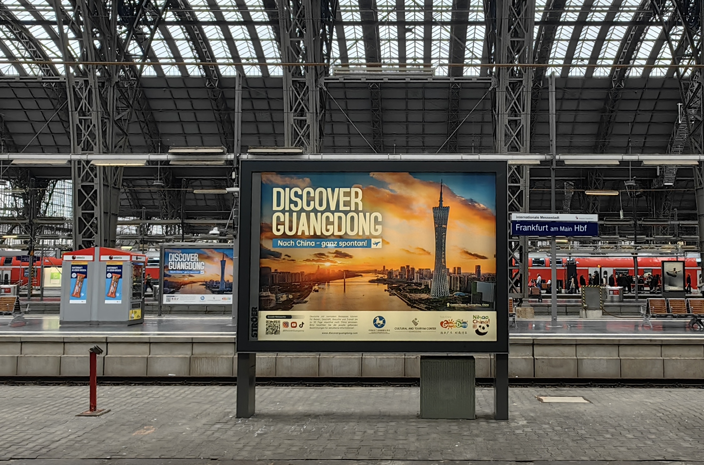 活动期间,广东文旅在法兰克福主要火车站及地铁站推出了“Discover Guangdong(发现精彩广东)”主题户外广告,吸引了大量往来旅客驻足观看,向德国民众全面展示岭南文化之美、创新活力之美。通过举办活动,粤港澳三地旅游部门与海外业界同仁进行了深入交流,携手把握粤港澳大湾区建设的历史性机遇,为大湾区文旅高质量发展凝聚更多智慧和力量。