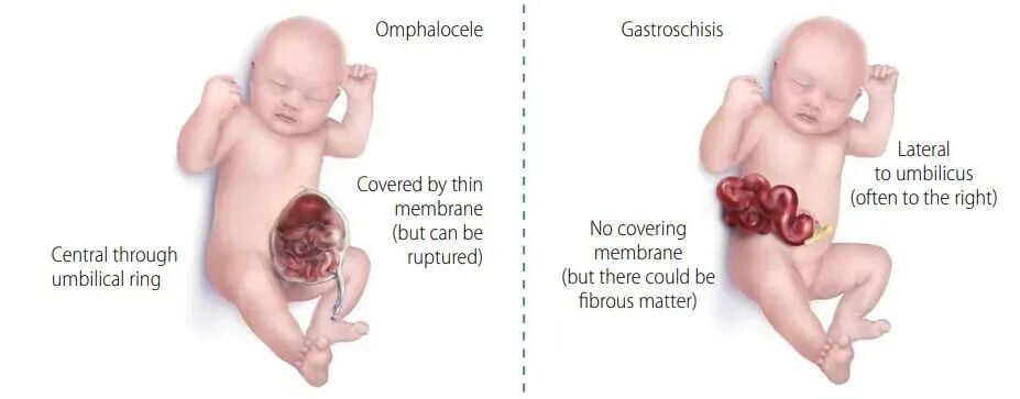 它是指婴儿在出生时,部分肠道(有时还包括其他腹部器官)通过腹壁上的一个缺损直接暴露在身体外,通常在孕中期的产前超声检查中就可以被发现。