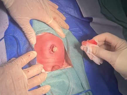 小希望出生后1小时,小儿外科新生儿团队在麻醉科、新生儿科协助下一起见证奇迹的“关窗”手术。经过1.5小时紧张、有条不紊的手术,手术切口巧妙地隐藏在肚脐边缘,幸运的小希望开始了漫漫的人生征途。