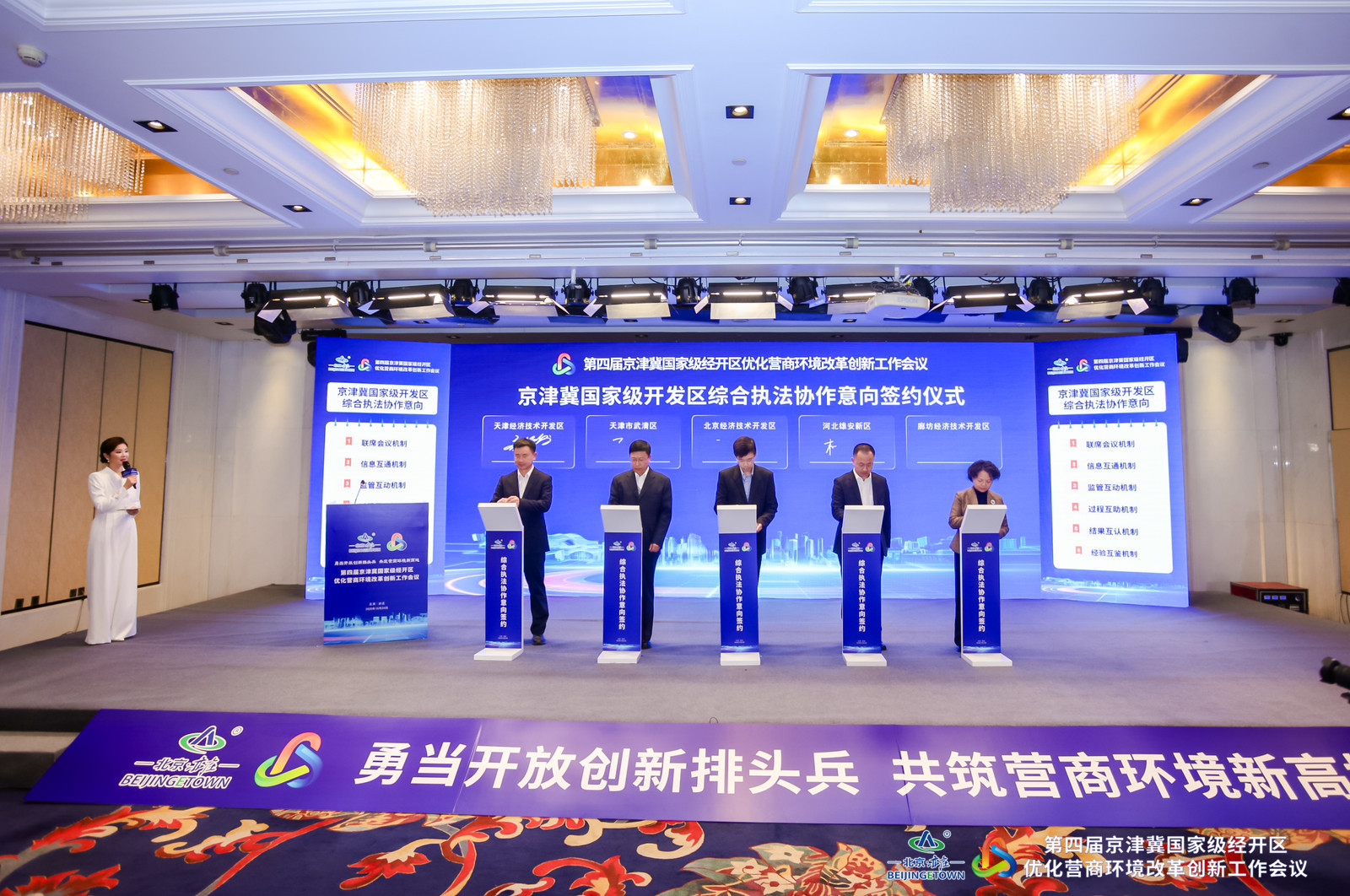 10月24日,第四届京津冀国家级经开区优化营商环境改革创新工作会议在北京经济技术开发区(简称“北京经开区”,也称“北京亦庄”)召开。会议以“勇当开放创新排头兵 共筑营商环境新高地”为主题,聚集了京津冀“政企学研”多方代表,共同擘画区域营商环境新蓝图。会议紧密围绕京津冀协同发展主旋律,系统总结京津冀三地国家级经开区优化营商环境改革创新合作联盟五年改革成效,发布政务服务“区域通办”、执法跨区域协作、联盟倡议行动等多项改革和发展成果,让企业群众少跑腿、好办事,助推区域营商环境提质升级。
