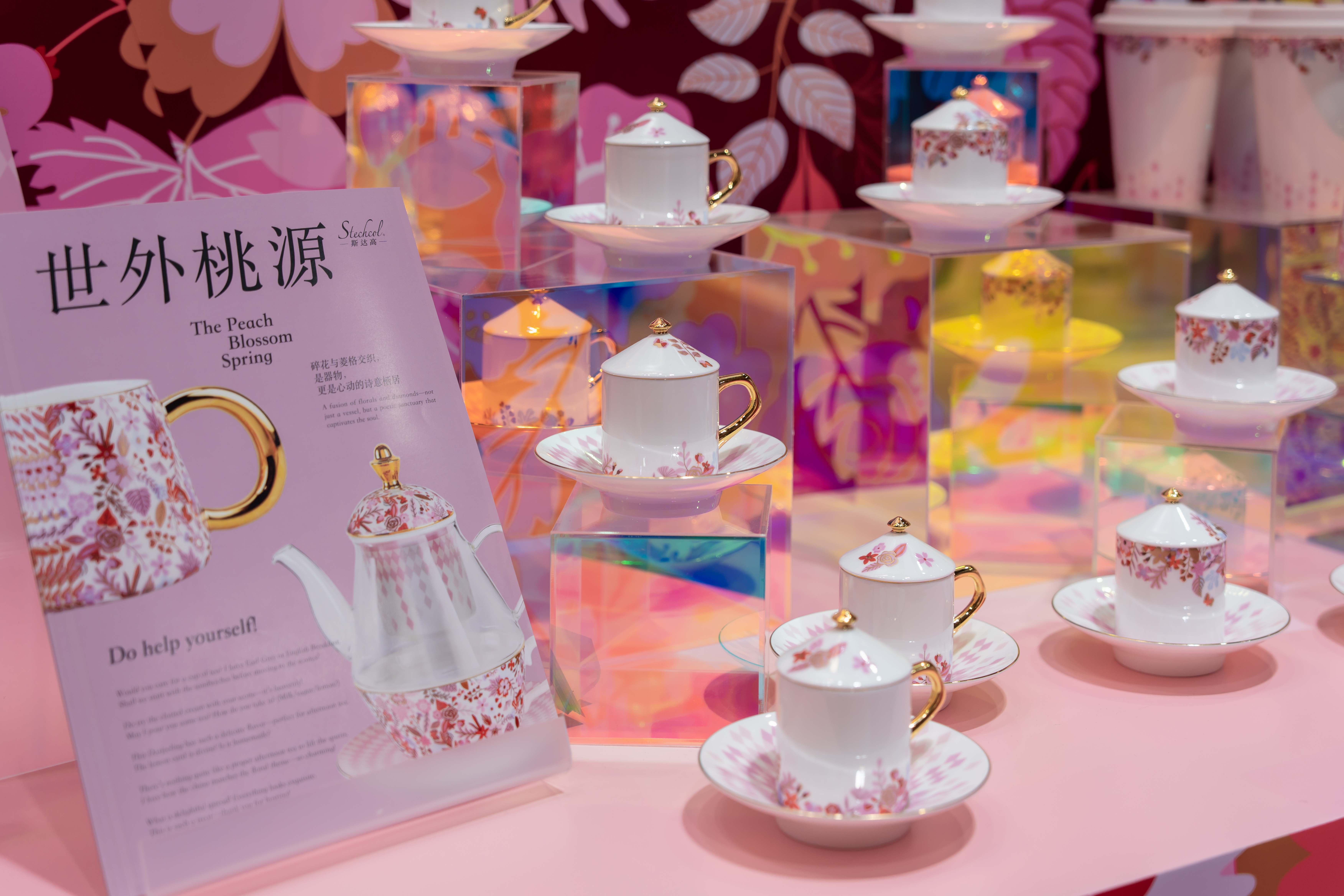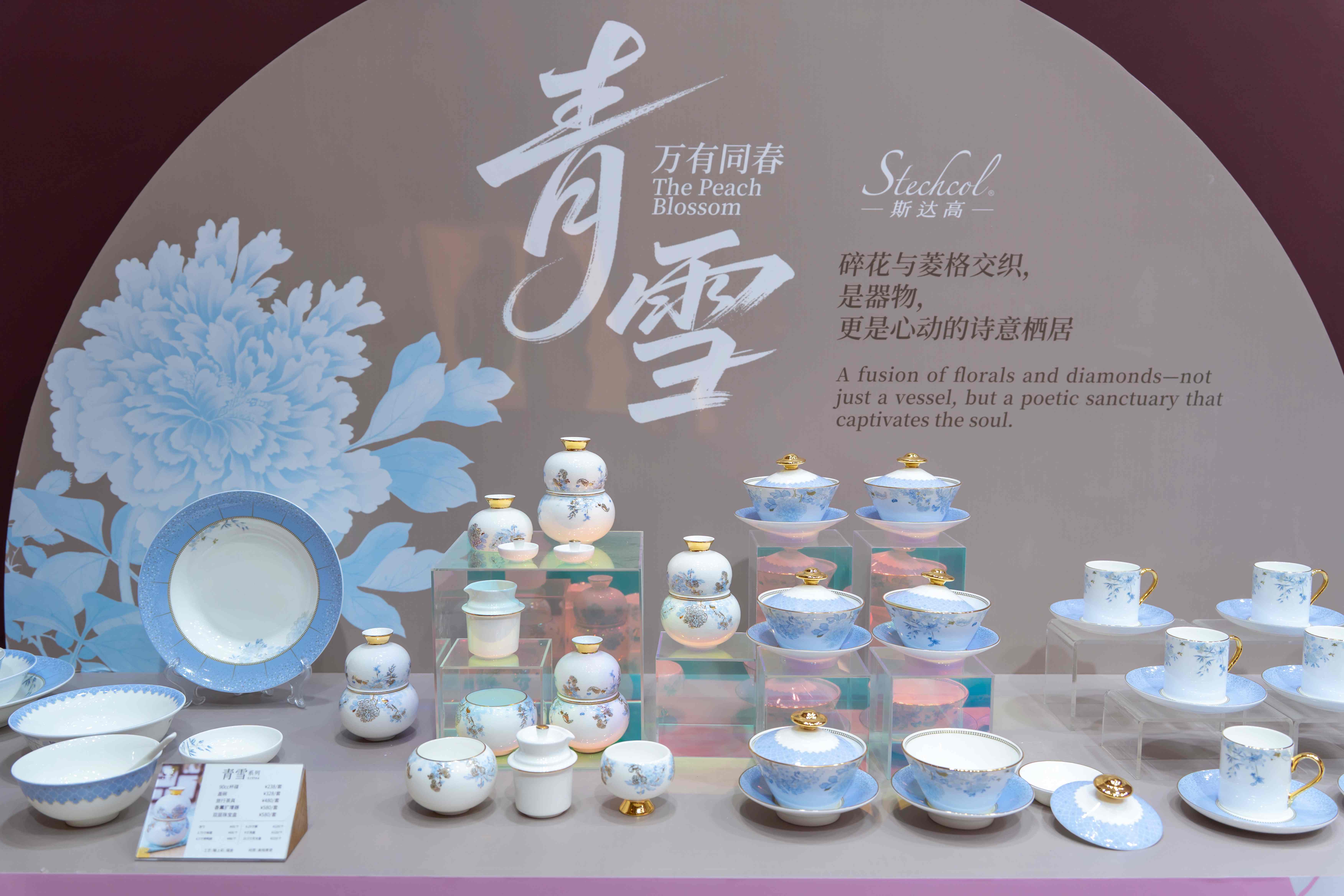 此外,“世外桃源”與“青雪”兩大系列,更是斯達高對“東方設計語言”的深度詮釋。“世外桃源”系列以粉色浪漫美學為基調,設計師將對理想棲居的想象凝於瓷面,用柔和釉色與簡約線條勾勒出靜謐意境,旨在讓使用者於喧囂日常中,通過器物重拾“世外桃源”般的恬淡與美好;“青雪”系列則以清代宮廷畫《萬有同春》為靈感源頭,突破性地將“百花競放”的生機與“冬日雪色”的清冷相融,天青釉色打底、雪白紋飾鋪陳、金線勾勒點睛,生動再現“雪中繁花傲立枝頭”的詩意畫面,讓民族文化的根脈與世界審美的潮流實現了跨時空對話。(記者 黃鳳鳴)