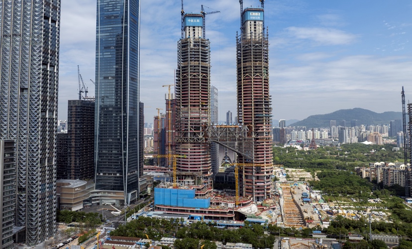 10月24日上午,有“未来之塔”之称的深圳湾超级总部基地C塔(以下简称C塔)迎来重大进展,6000吨钢结构连廊在119.15米高空完成提升合龙。东、西双塔连为一体,如一对恋人优雅牵手,在深圳湾畔翩翩起舞。