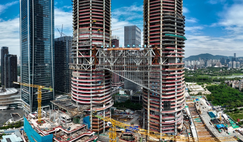据了解,深圳湾超级总部基地C塔项目由深湾发展投资建设,中建五局总承包,中建五局和中建钢构负责钢结构深化设计、制造和安装。项目位于深圳湾超级总部基地“十字双轴”空间格局中心区位,东塔高度400米、西塔高度336米,是全国连廊双子塔第一高楼,“深湾都市核心”三大超高层地标之一,建成后将成为片区TOD地标,不仅为企业总部、国际组织提供世界级服务平台,更将以“景观式超级公共空间”重塑深圳湾天际线,成为点亮湾区的“未来之塔”,为粤港澳大湾区城市综合体高质量发展注入新动能。