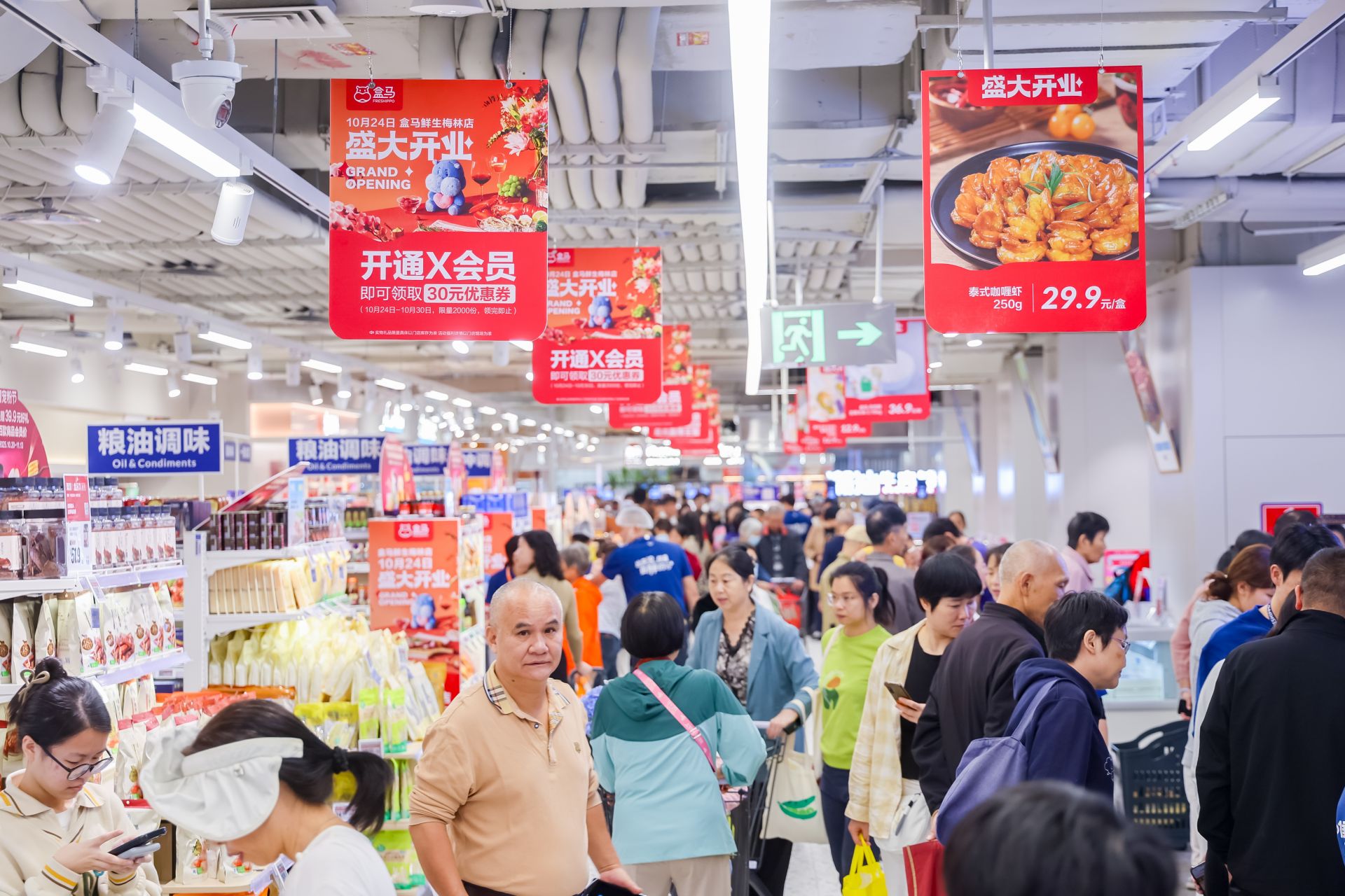 盒马开业福利同步上线,10月24日至10月26日期间,消费者单笔实付满199元可参与抽奖最高赢帝王蟹;千份好礼打卡免费领;新用户注册即享新人券包及前三单免运费权益。