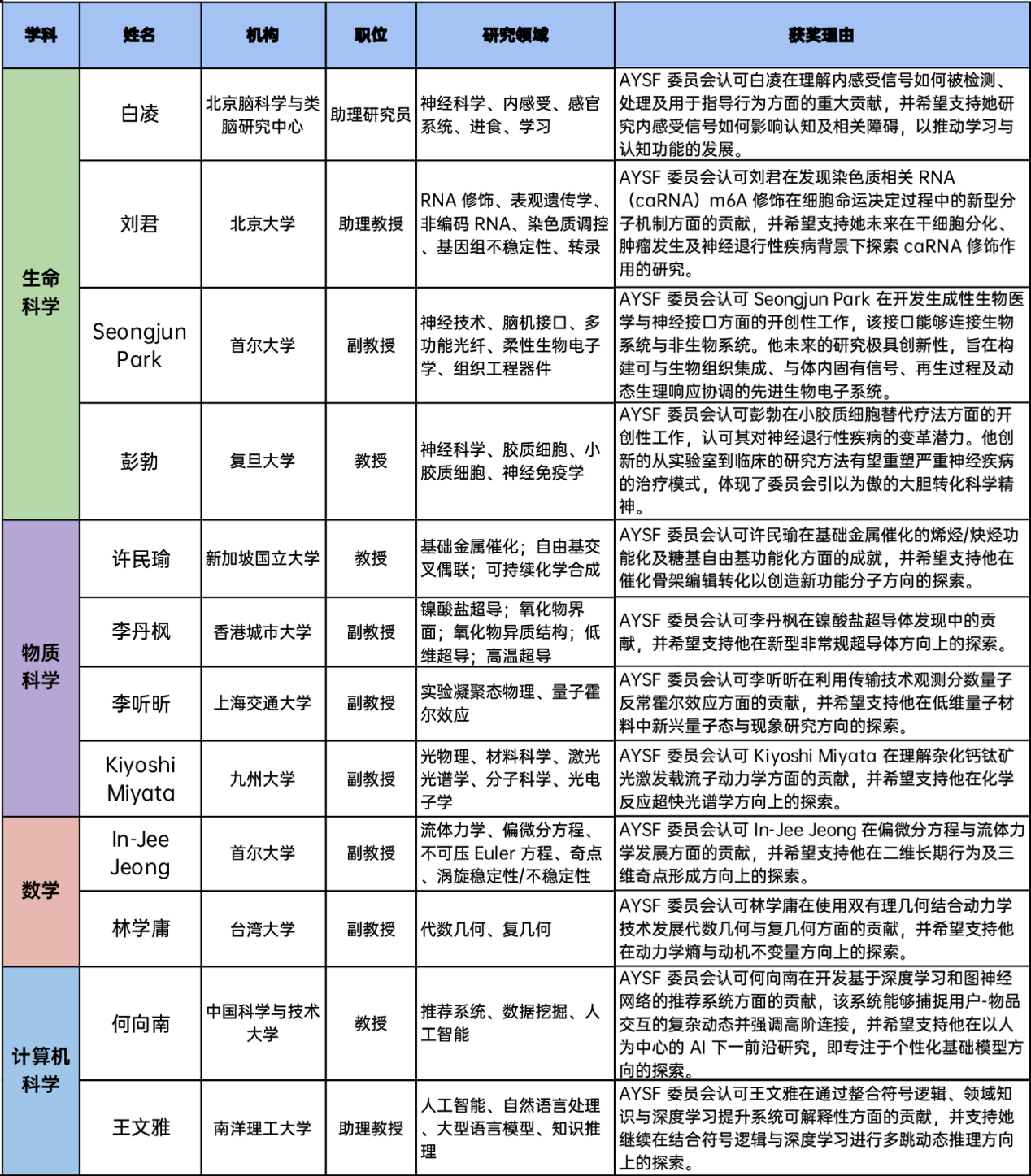 2025亚洲青年科学家基金项目颁奖典礼依据生命科学、物质科学、数学与计算机科学领域,对在各自研究领域中做出杰出贡献的青年科学家进行了表彰。