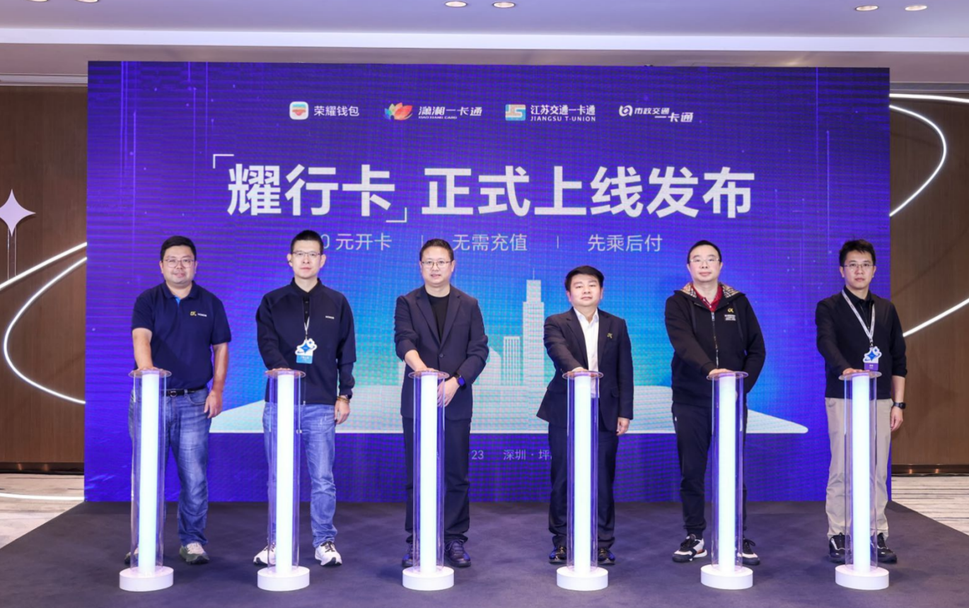 发布会现场,荣耀钱包邀请生态伙伴——潇湘一卡通、江苏交通一卡通、北京市政交通一卡通等3家交通卡公司、支付宝等支付渠道伙伴,联合宣布“耀行卡”产品正式发布。耀行卡产品将按不同手机型号分批逐步向用户开放,届时用户可在荣耀钱包app中开通和使用。
