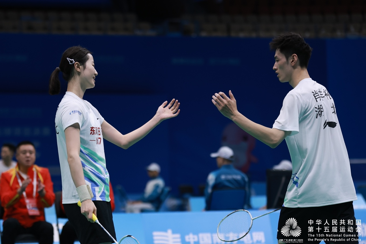 10月24日,十五运会群众比赛羽毛球项目决赛混合团体赛结束第一阶段小组赛争夺。东道主广东队展现出强大的整体实力,在全部四个年龄组别的赛事中,均有队伍晋级到半决赛。