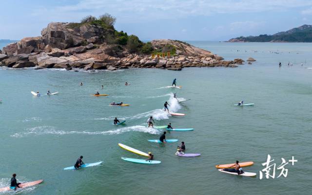10月19日,惠州狮子岛,周末前来冲浪的人们。