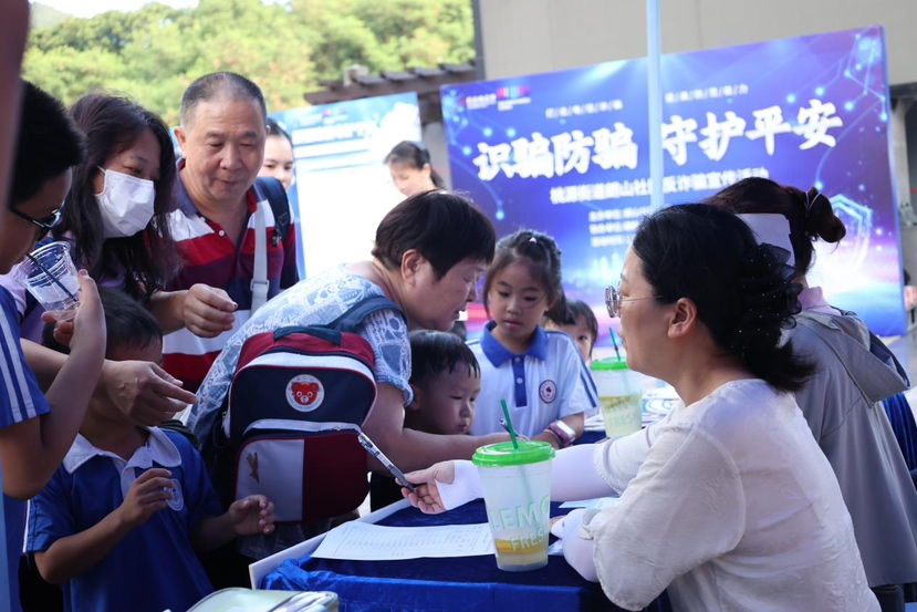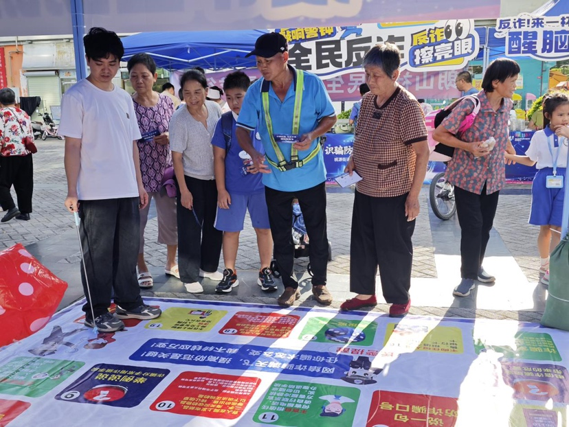 活动现场,社区工作人员精心编排的各种反诈游戏成为亮点。活动现场化身“反诈游乐园”,5个趣味游戏摊位前排起长龙。社区工作人员将常见诈骗场景转化为游戏关卡,居民通过挑战即可赢取反诈主题礼品。在“反诈套圈圈”游戏区,地面上设置印有“虚假投资”“AI换脸”等字样的目标圈,参与者套中后需答对防范措施方可得分并换取礼品,吸引了群众排队参与。