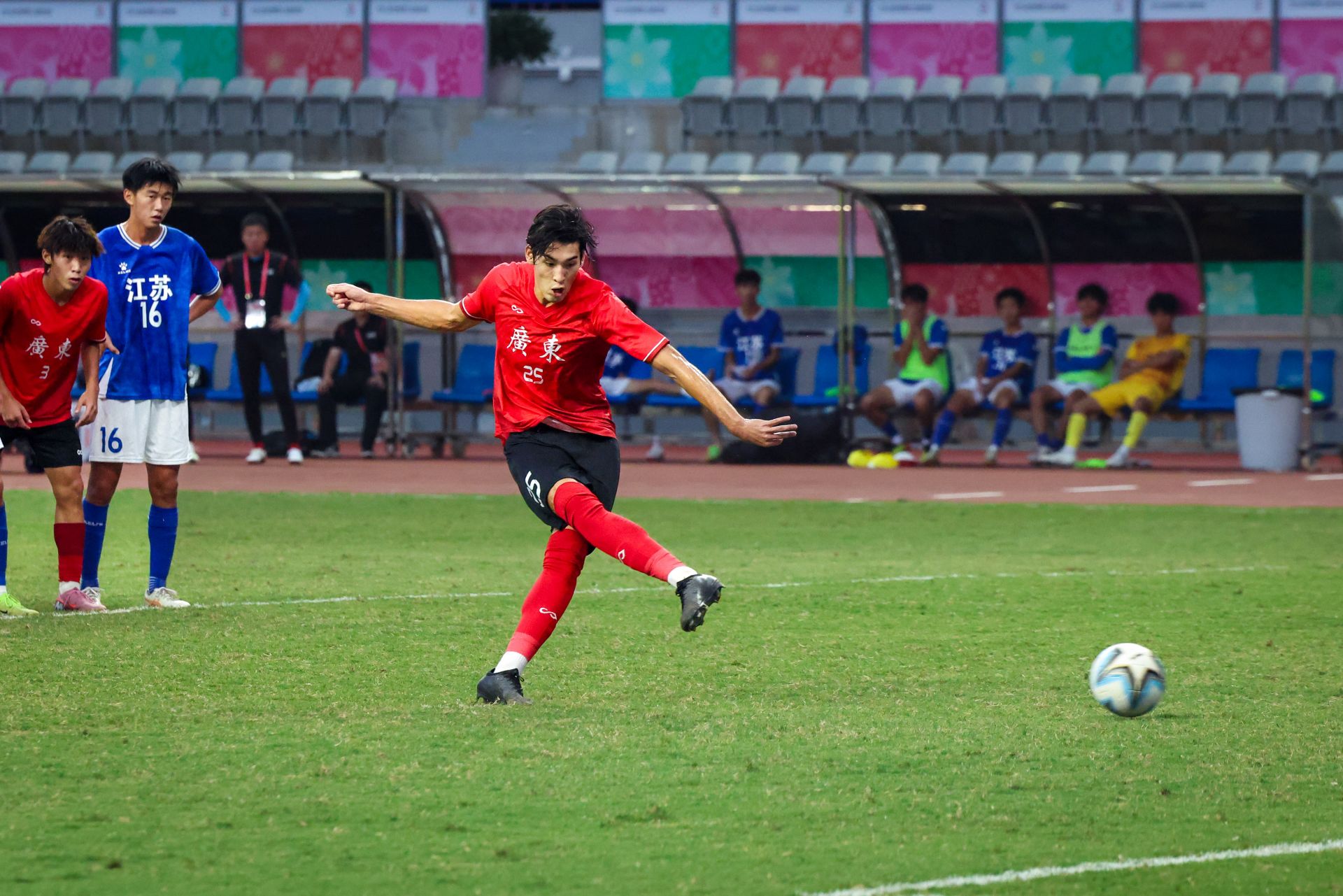 不过在上半场,占据主动的是江苏队,广东队门将李锦鹏高接抵挡,还是在第37分钟被攻入一球:江苏队边路传中,广东队球员潘诺均不慎自摆乌龙。不过进入下半场,比赛风云突变。第48分钟,肇宸惟左路送出助攻,朱信宇推射远角破门。7分钟过后,替补出场的刘佳乐禁区边缘劲射破网,帮助广东队反超比分。