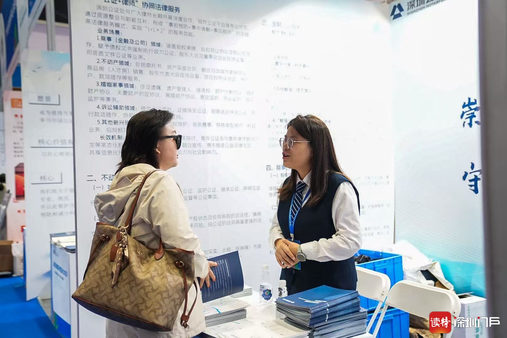 展会现场设置了七大特色展区。其中,“法律+产业”展区汇聚了13家机构,聚焦深圳“20+8”战略性新兴产业集群与未来产业,为不同发展阶段的企业提供定制化服务。