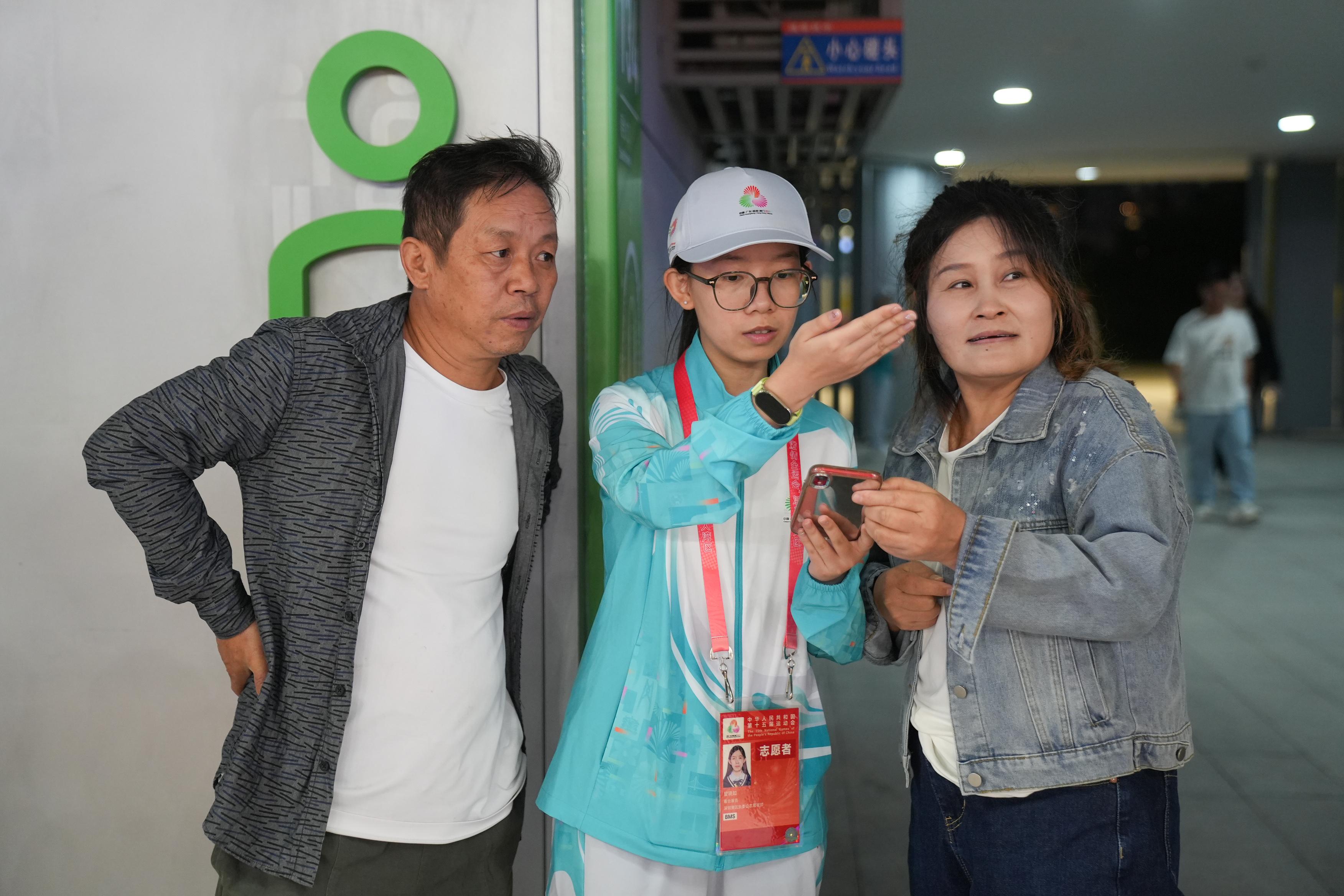 ▲父母、教练、亲友等在看台组成了潘锘均强大的助威团。
