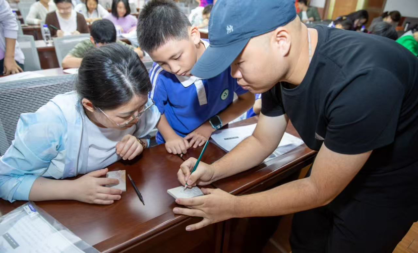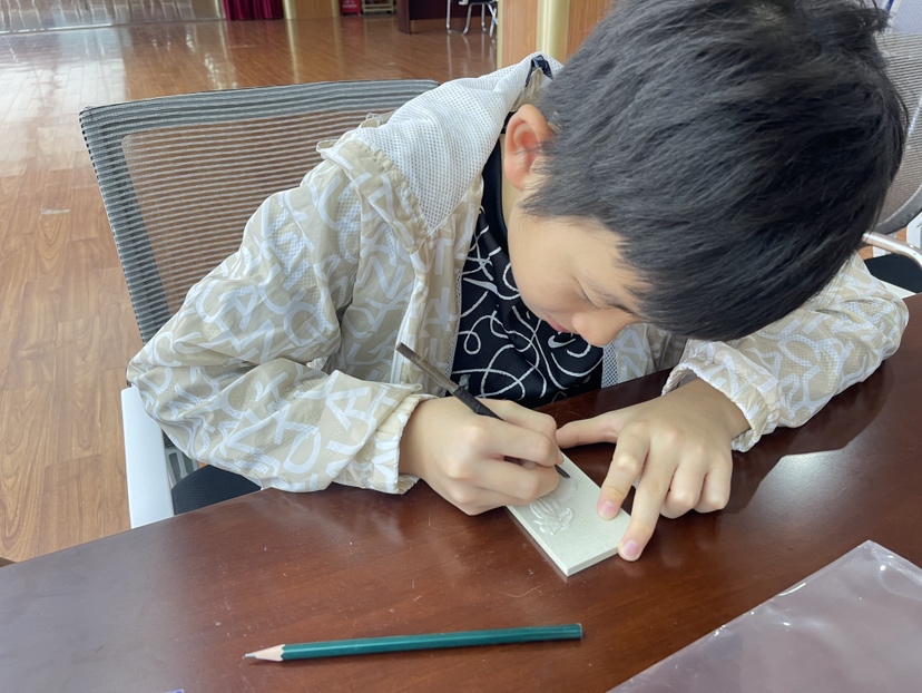 在体验玉雕环节,参与者们热情高涨,先用铅笔描绘图案,再用钨钢刻刀精心雕刻。不出一会,龙、蛇、狗、兔、羊各种动物的绒毛,在创作者们的手下,变得凹凸有致。“我带着小孩来体验的,不仅能了解我们的玉石文化,还能体验雕刻技艺,小孩玩得开心,挺有意思的!”一位年轻妈妈对记者说。