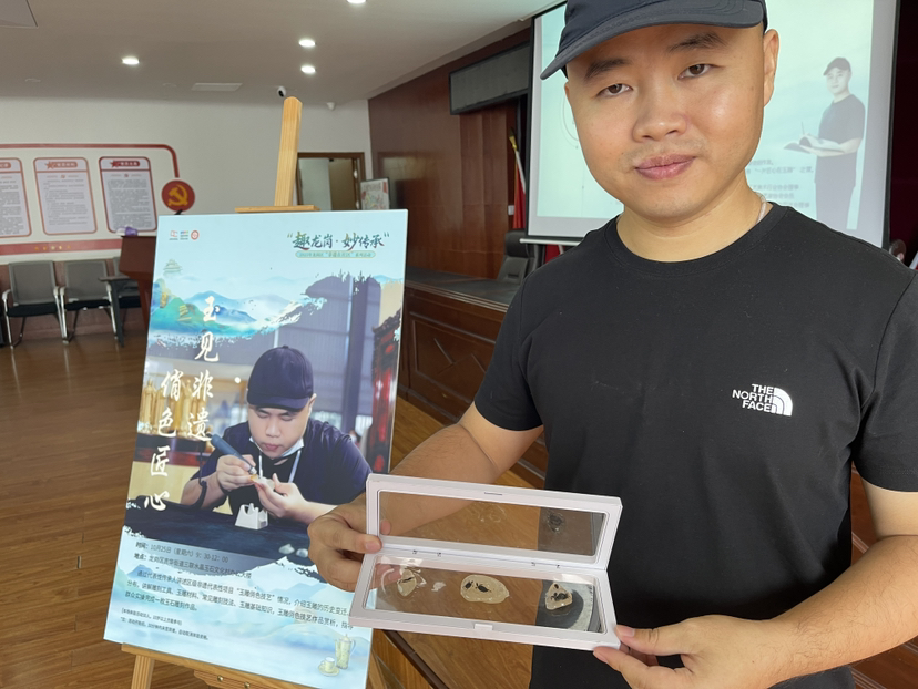 作为“玉雕俏色技艺”非遗传承人,他向参与活动的市民讲解该技艺的核心:“依色取巧、浑然天成”。玉雕俏色技艺与普通玉雕有着本质区别,在颜色定位上,以色彩为设计灵魂,而普通玉雕常将颜色视为次要因素并打磨剔除;创作逻辑上,先分析玉雕颜色,依据颜色构思后进行定制化雕刻,而普通玉雕则是先定题材再选料雕刻。“玉雕俏色技艺难得的是,还不改变玉石的天色颜色,通过精妙构思而保留天然,凸显玉料的独特性。”陈宗艺强调。2023年,玉雕俏色技艺被列入第八批区级非物质文化遗产名录。