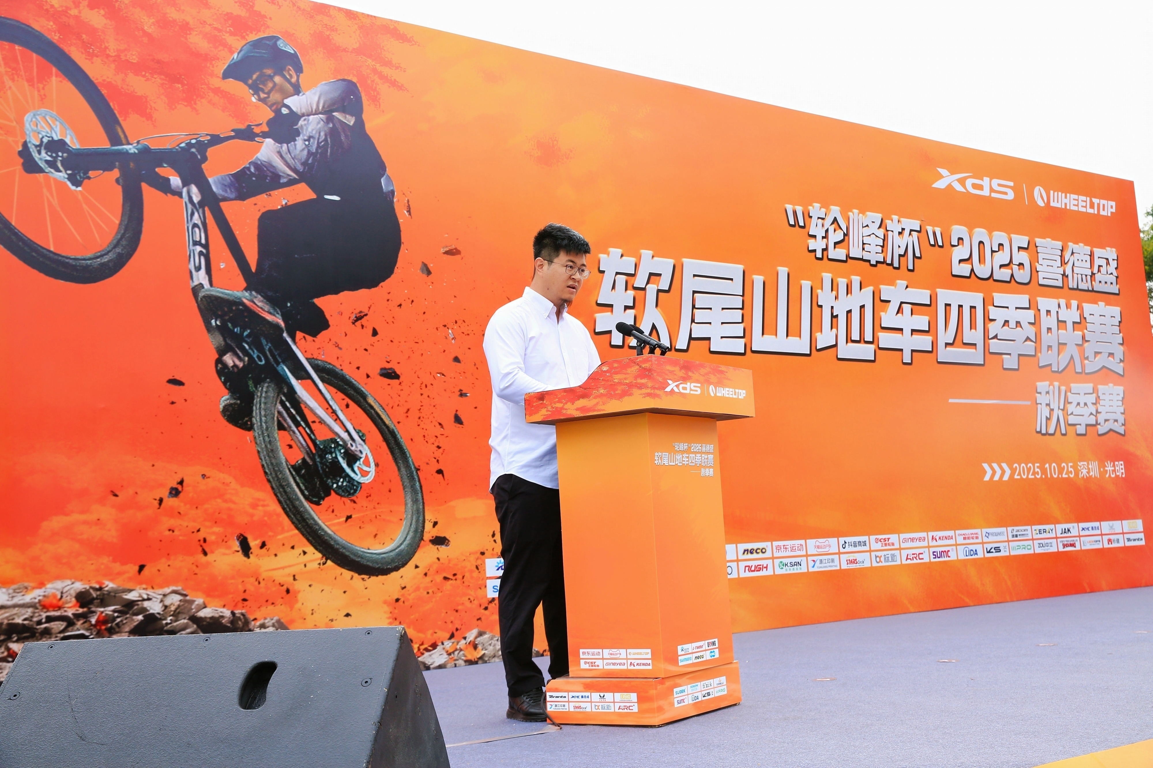 本次赛事的冠名赞助商——兰溪轮峰车料有限公司总经理宋泽宇致辞中表示:轮峰车料能与喜德盛并肩同行,共同助力中国山地自行车运动蓬勃发展,深感荣耀!