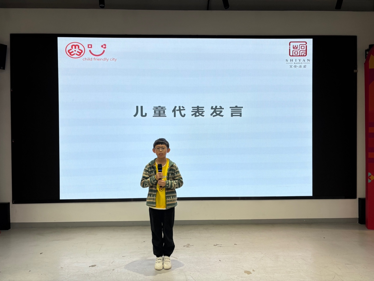 活动中最动人的环节,是儿童代表们的真挚发言。小代表分享了自身在议事会活动中的所见所闻、所思所感,表达了作为一名“石岩小主人”的自豪与责任:“议事不是争输赢,而是把每个人的‘小期待’拼成大家的‘大满意’。”“为了让石岩的建设更加美好,需要我们儿童来发声,提出宝贵的意见。”“未来我还会带着这份初心,继续做城市的‘小小共建者’!”真挚的发言,赢得了全场阵阵掌声,也完美诠释了儿童议事会“被听见、被尊重、被探讨”的核心理念。