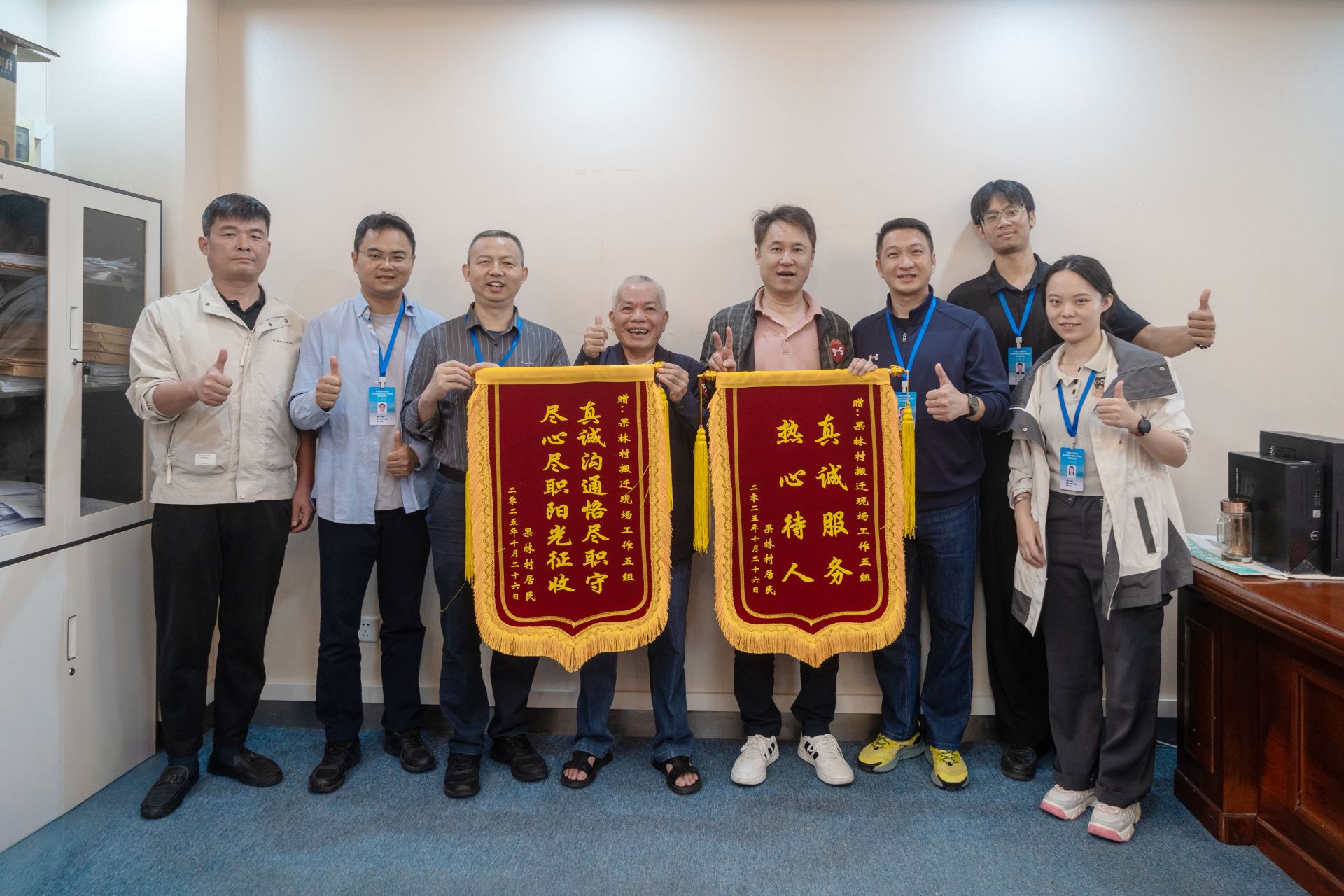 第一工作组全体成员紧密配合,展现出强劲的凝聚力和执行力,首日签约率排名第一。9月28日,针对异地群众沟通难的问题,第一工作组率先走出深圳市外,前往广东省阳江市面谈被搬迁人,聚集关键未申报被搬迁人开展“点对点”攻坚,于当日现场签署了申报表及相关面积清点表。既完成项目推进任务,又保障异地被搬迁人的知情权与参与权。