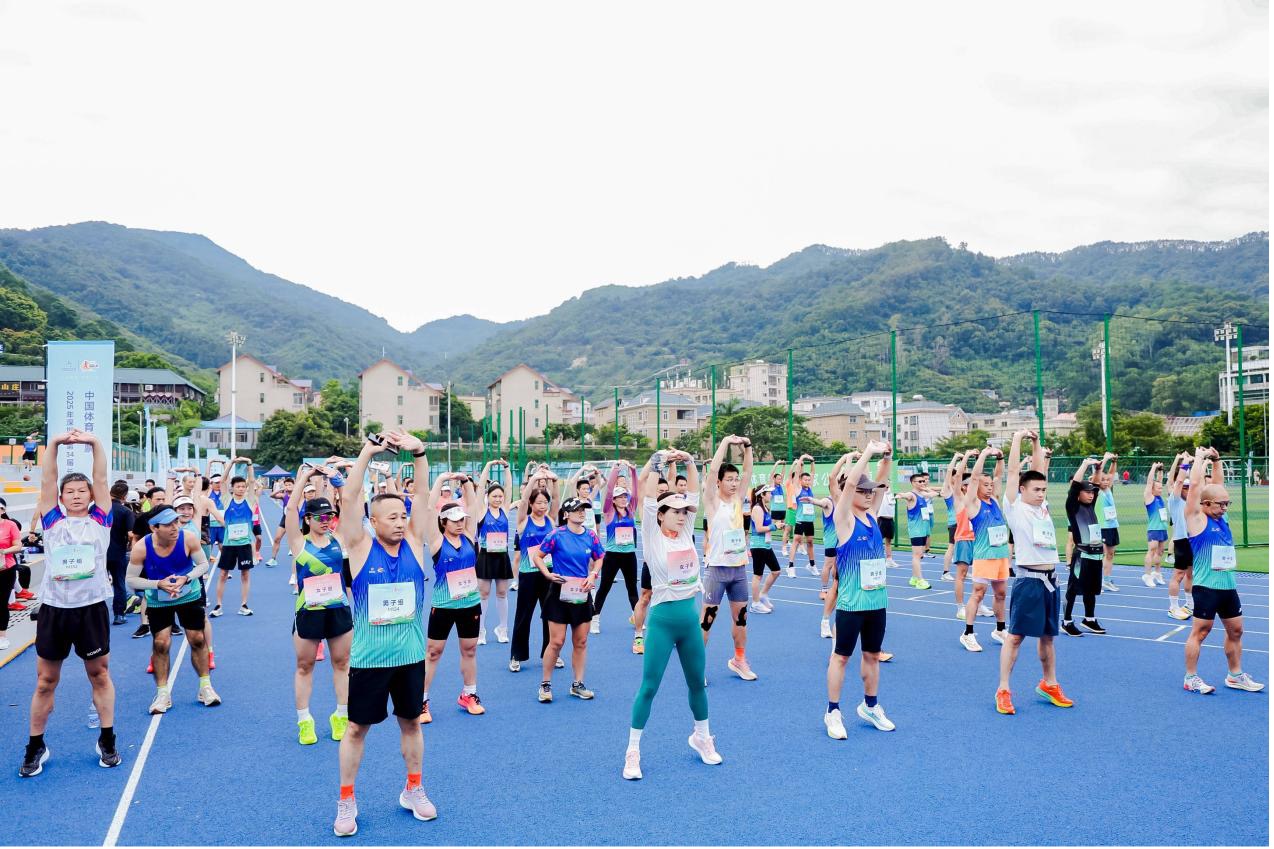 ▲参赛者在做赛前热身运动。