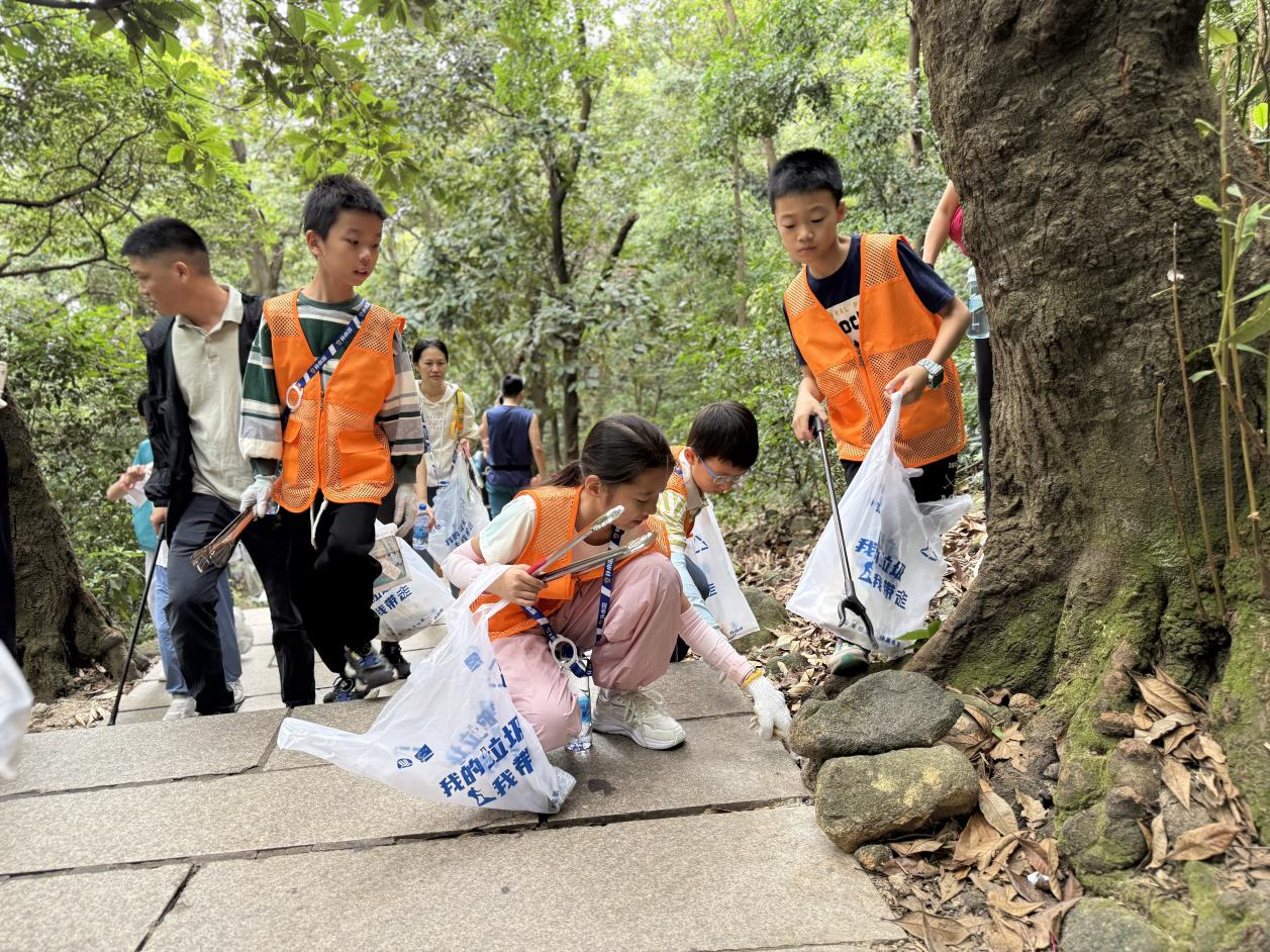在讲师郭建庚、潘岭与登山徒步爱好者陈寒有的带领下,孩子们以“阅读者”和“守护者”的双重身份,登上凤凰山体验自然实践。出发前,防控讲解员潘岭为孩子们科普基孔肯雅热等蚊媒传染病的防蚊知识与防护方法。郭建庚通过宣传折页与趣味问答,带来生动的垃圾分类互动课。登山徒步爱好者陈寒有则讲解徒步登山的注意事项与安全要点。在他和馆员的带领下,孩子们手持环保袋向山顶进发,沿途专注地捡拾沿途的空瓶、包装纸等垃圾。在山顶观景平台,馆长少年何利雯带来的凤凰山人文传说讲解,从凤岩古庙到望烟楼,生动的故事让孩子们了解到脚下这片土地的过往。