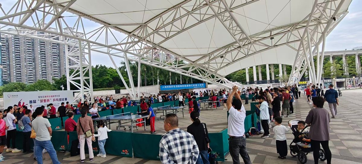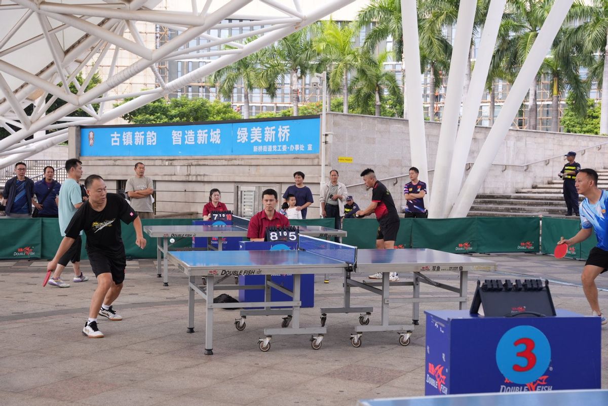 这场乒乓球赛不只是球赛,更是新桥“大家乐”社区氛围的一个缩影。团队冠军队来自芙蓉湾景小区队,小区常设3张球台每晚开练。来自新桥社区的沙彼高企业也组队参赛,乒乓球运动是企业员工广泛参与的热门活动。