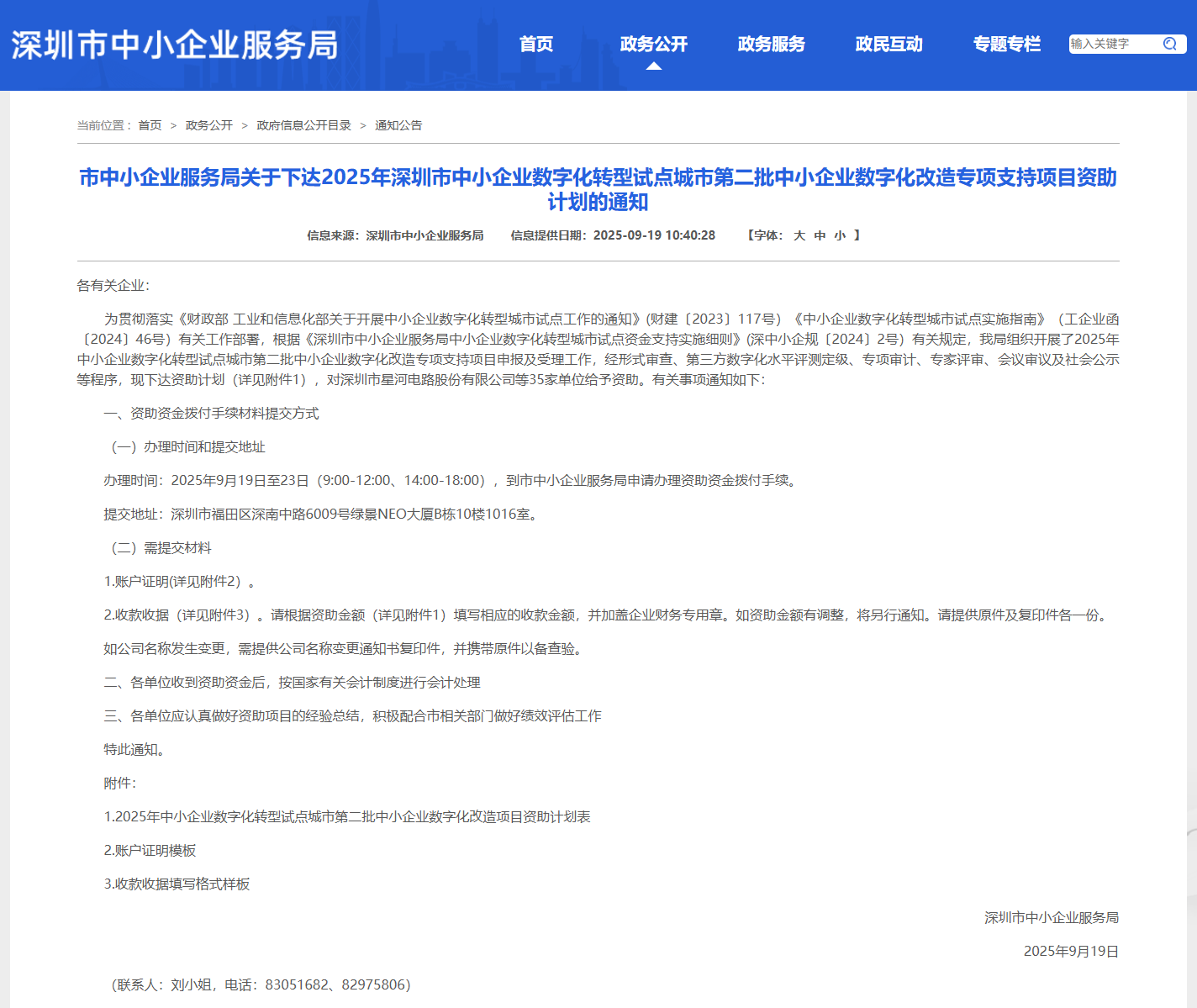 近日,深圳市中小企业服务局组织开展了2025年中小企业数字化转型试点城市第二批中小企业数字化改造专项支持项目申报及受理工作,经形式审查、第三方数字化水平评测定级、专项审计、专家评审、会议审议及社会公示等程序,现下达资助计划(详见附件1),对深圳市星河电路股份有限公司等35家单位给予资助。有关事项通知如下: