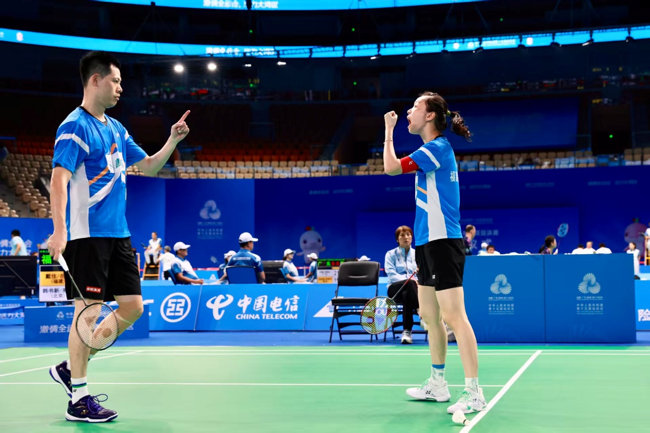 第十五届全运会群众比赛羽毛球项目决赛于10月26日在深圳市体育中心体育馆结束,十枚金牌名花有主。四个年龄组别的混合团体冠军产生,广东队、福建队、北京队和香港队各得一冠。福建队在B组(35岁-44岁)决赛以大比分2比0击败北京队,勇夺金牌。在获得金牌的队伍中,福建队喜上加喜,冠军主力在颁奖仪式之后求婚成功,抱得美人归。