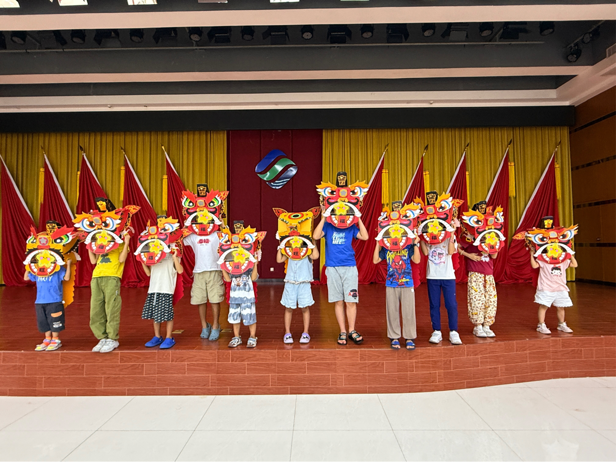 “寻访历史之旅,感受非遗魅力”亲子非遗文化探索活动,儿童制作完成的小醒狮合影留念。