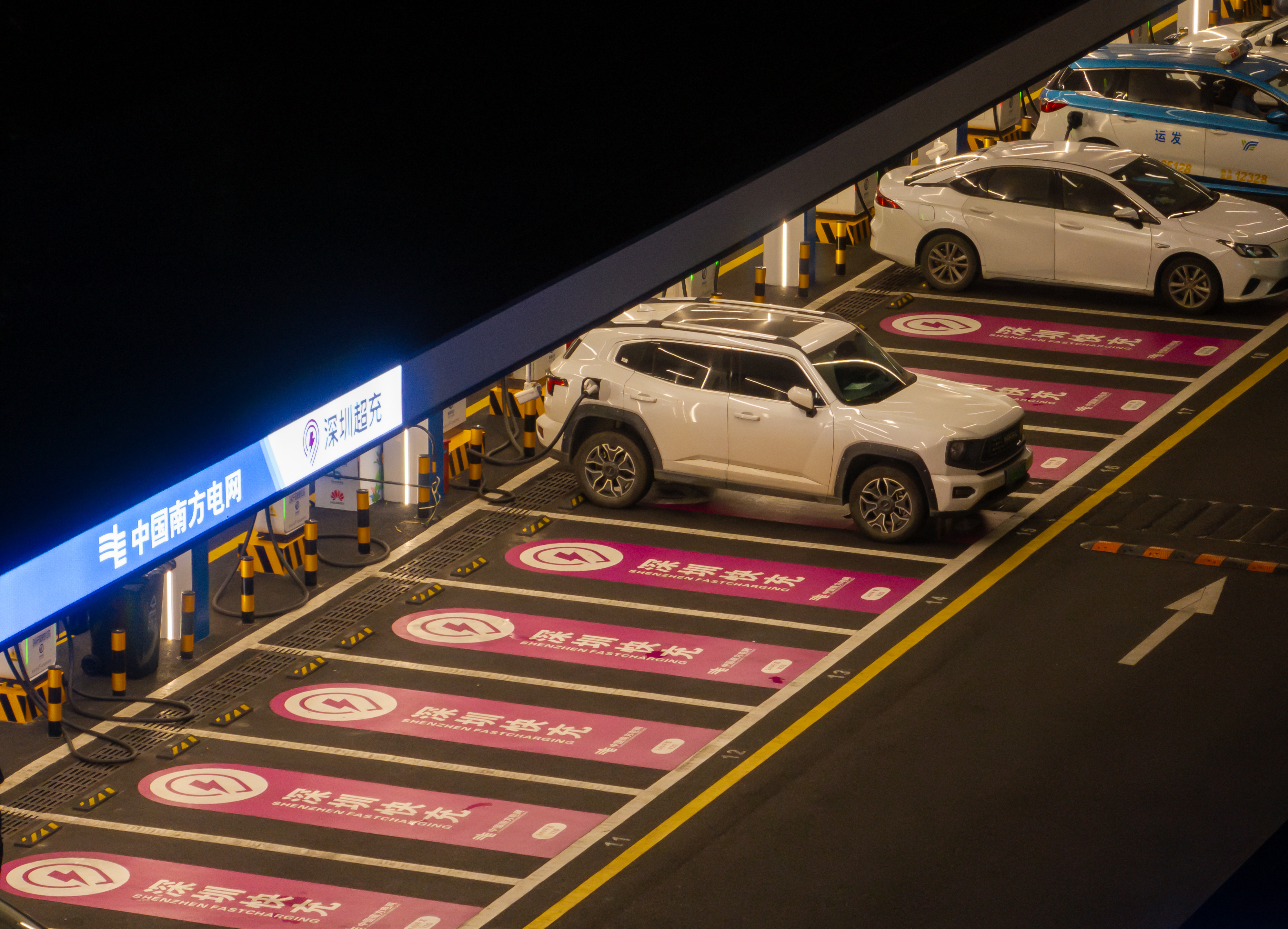 在深圳山海旅游胜地——盐田区,毗邻热门景点和大型商场的沙保国际创新园超充站,是许多网约车和新能源车不可或缺的“能量补给站”。该站配置600千瓦超充桩2个、180千瓦双枪快充桩8个,可同时满足18辆新能源汽车充电。