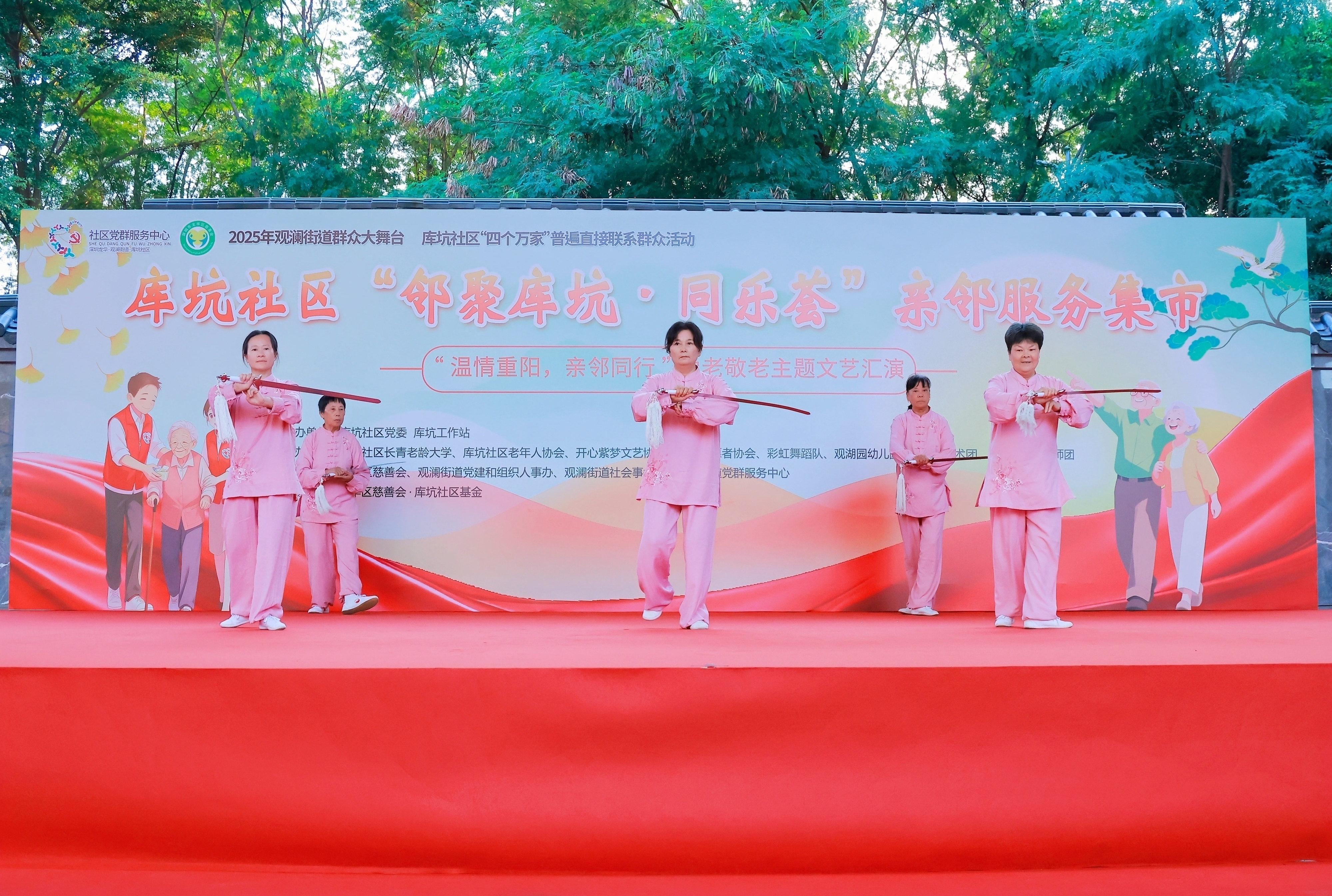 近日,观澜街道库坑社区在新围新村文化广场举办“温情重阳 亲邻同行”主题文艺汇演暨亲邻集市活动,与辖区近200名居民共迎重阳佳节。