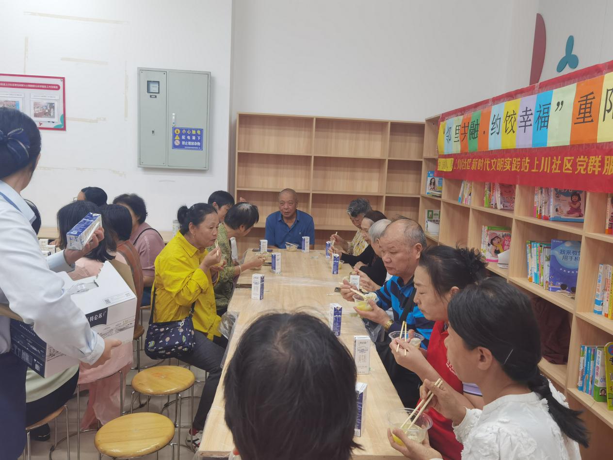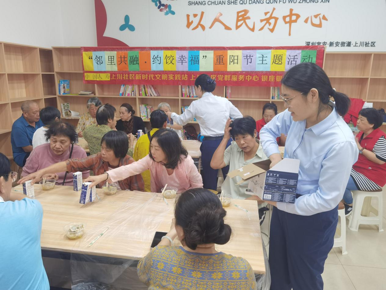 为弘扬中华民族尊老、敬老、爱老的传统美德,近日,新安街道上川社区党群服务中心在党建引领下,多方联动携手爱心企业中国人寿、银座银行共同开展“邻里共融·饺约幸福”重阳节主题活动,为辖区内的高龄老人、独居长者、困境老人以及空巢老人送上了一份热气腾腾的节日关怀,让老人们在欢声笑语中度过了一个温馨难忘的重阳佳节。