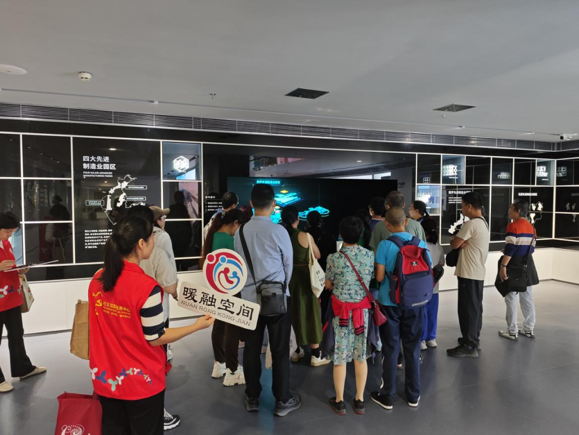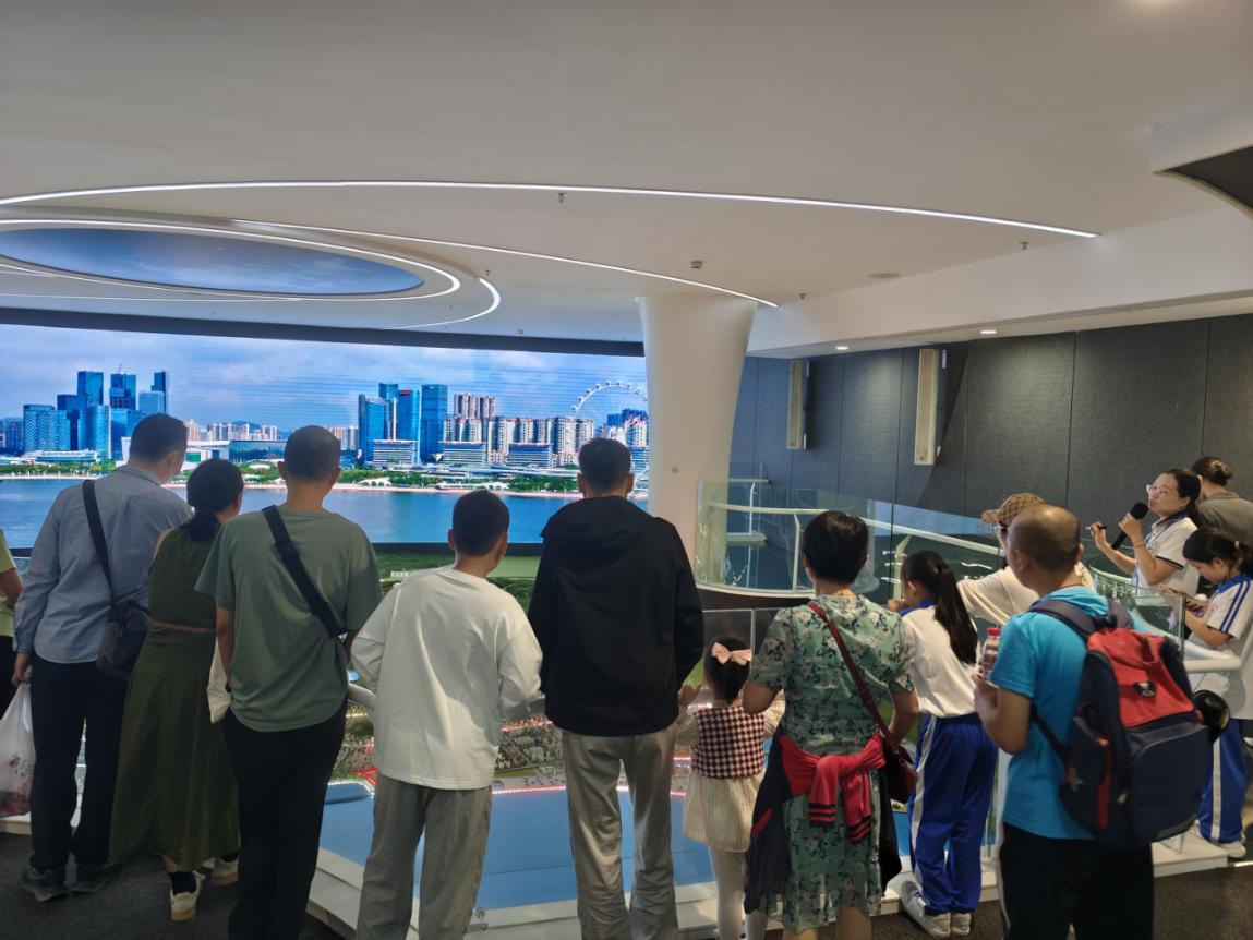 随后,团队参观了城市规划展览馆。MR全息装置、裸眼3D碗幕影院等前沿技术打造了沉浸式体验空间。康复者在“智造强区”展区操作机械臂模型,在“未来家园”展区通过“飞跃新宝安”影片俯瞰城区规划。