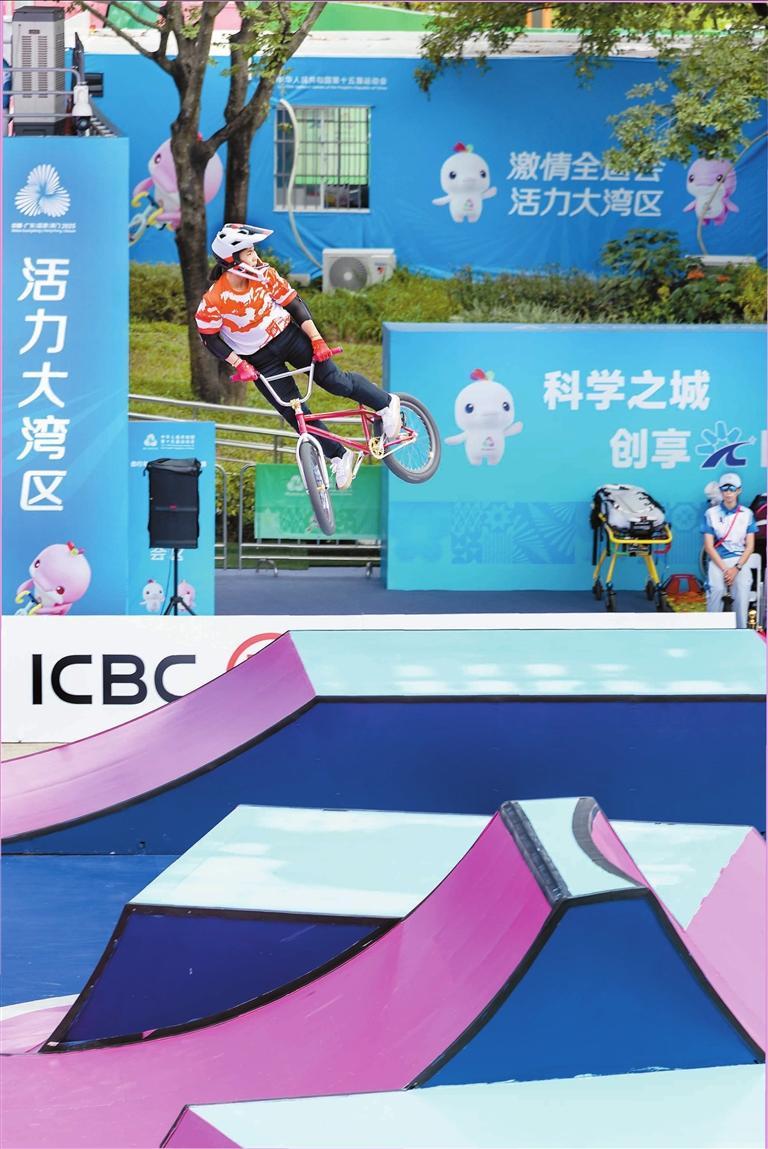 10月24日至25日,第十五届全国运动会深圳光明赛区,自行车(自由式小轮车)比赛酣畅激烈,为市民带来连续两天的空中技巧盛宴。