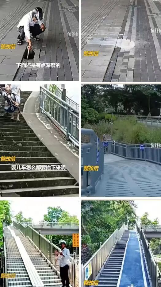 今年9月,一名网友在“卷尺哥”发布的视频下留言称,宝安区海谷科技大厦旁边一处阶梯严重破损,一脚踩下去可能陷落。“@深圳—民意速办”平台发现此条线索后,当天就联动宝安区石岩街道现场走访查实台阶石板损坏情况,核实后立案并向承办单位发起督办。很快,该处台阶的破损位置完成修补。