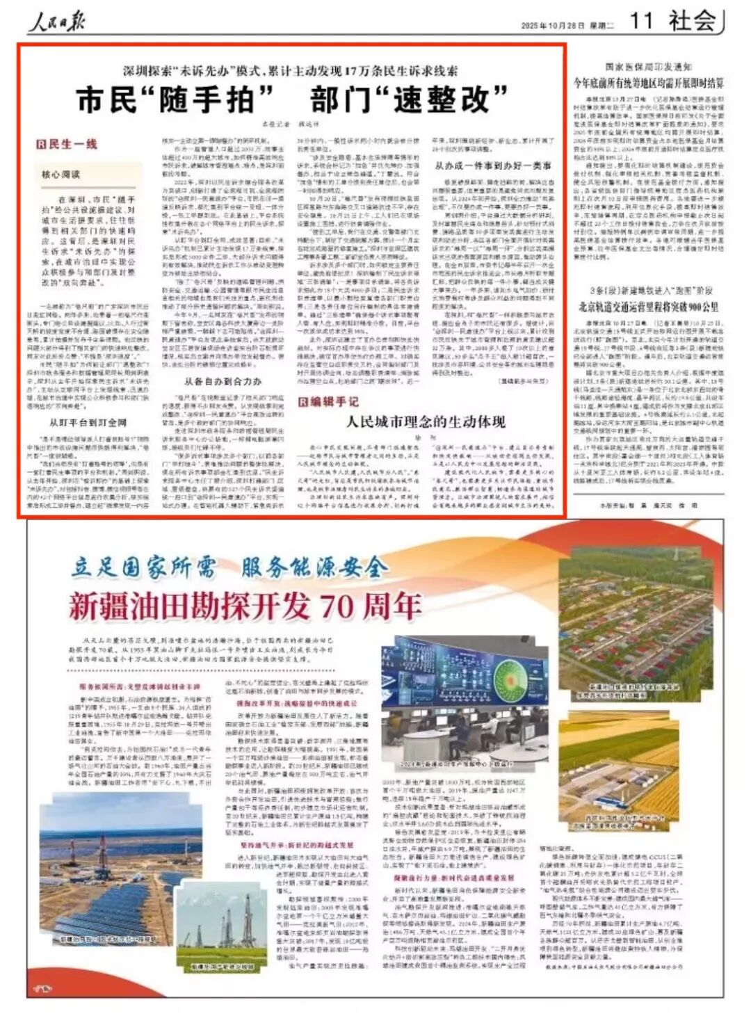 10月28日,人民日报刊发了《深圳探索“未诉先办”模式,累计主动发现17万条民生诉求线索 市民“随手拍” 部门“速整改”》文章。文章以深圳“卷尺哥”为例,讲述了深圳是如何做到在城市治理中实现公众积极参与和部门快速响应的“双向奔赴”。