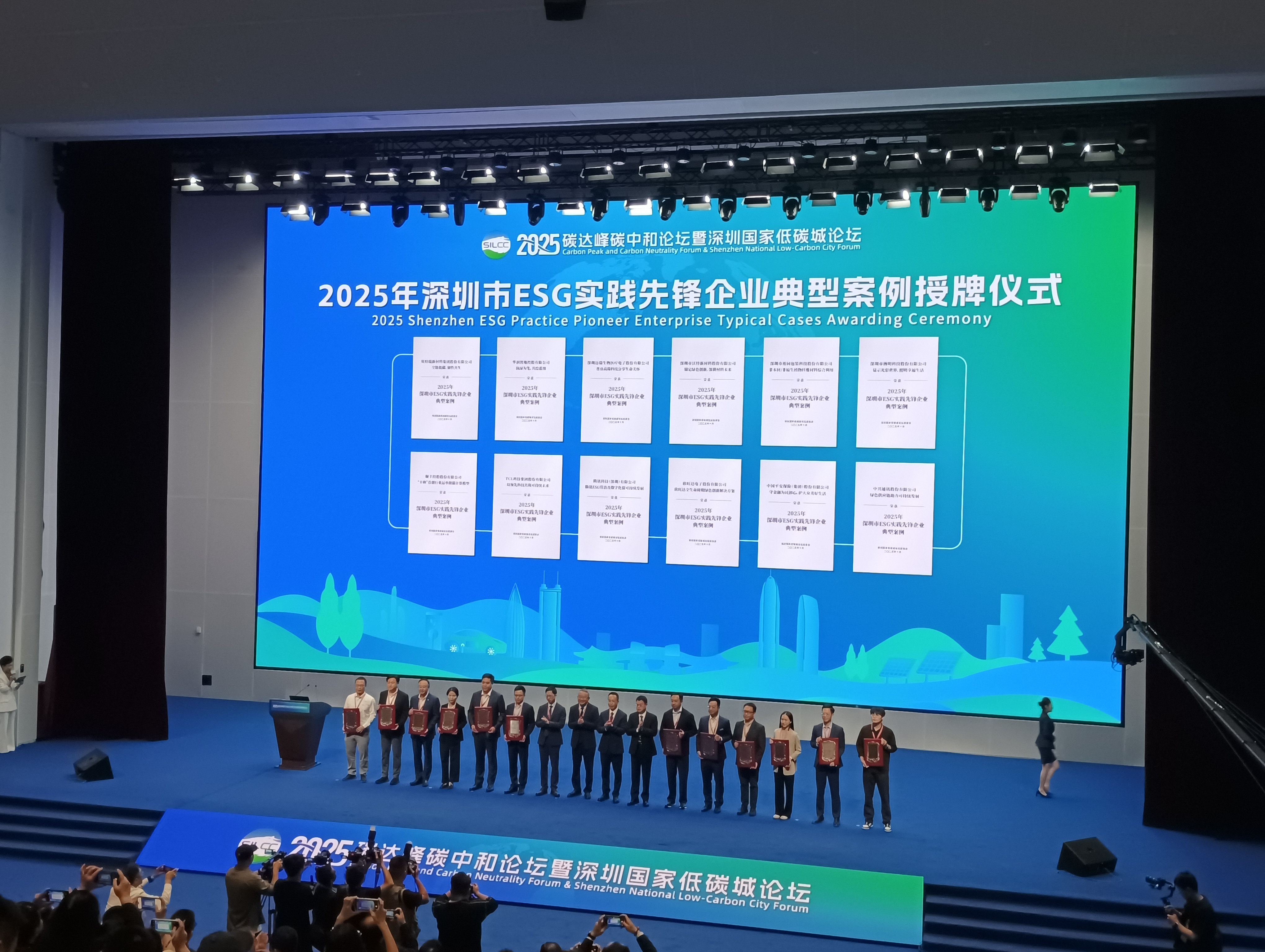 开幕式上还举行了2025年深圳市ESG实践先锋企业典型案例授牌仪式,贝特瑞新材料集团股份有限公司、华润置地控股有限公司、深圳迈瑞生物医疗电子股份有限公司、深圳市洲明科技股份有限公司、深圳市裕同包装科技股份有限公司、深圳市沃特新材料股份有限公司、顺丰控股股份有限公司、TCL科技集团股份有限公司、欣旺达电子股份有限公司、腾讯科技(深圳)有限公司、中兴通讯股份有限公司、中国平安保险(集团)股份有限公司等12家企业申报的案例当选2025年深圳市ESG实践先锋企业典型案例,展示了企业在推动绿色低碳发展、践行社会责任以及优化公司治理等方面取得了新成就。