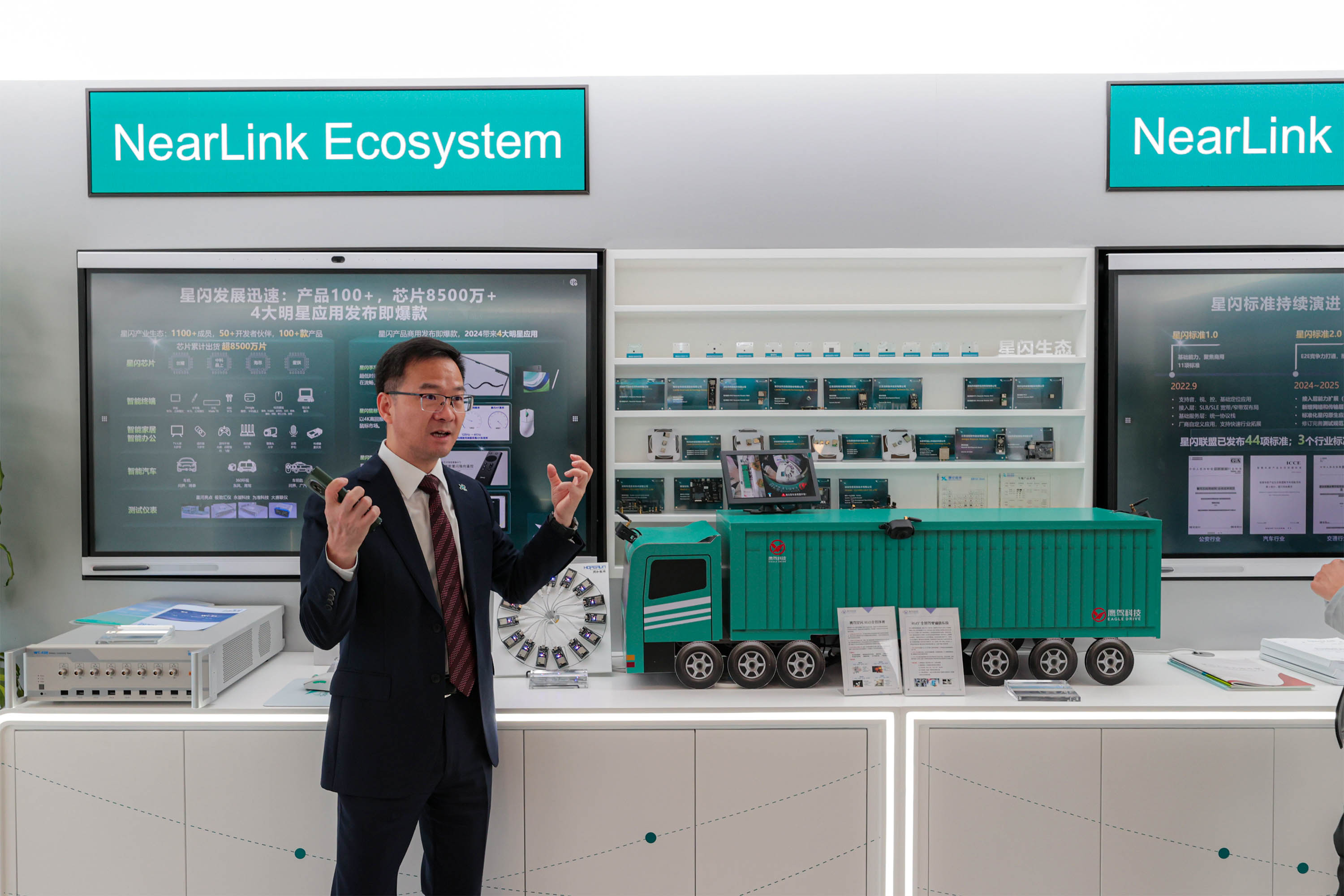 国际星闪无线短距通信联盟相关负责人接受记者采访。